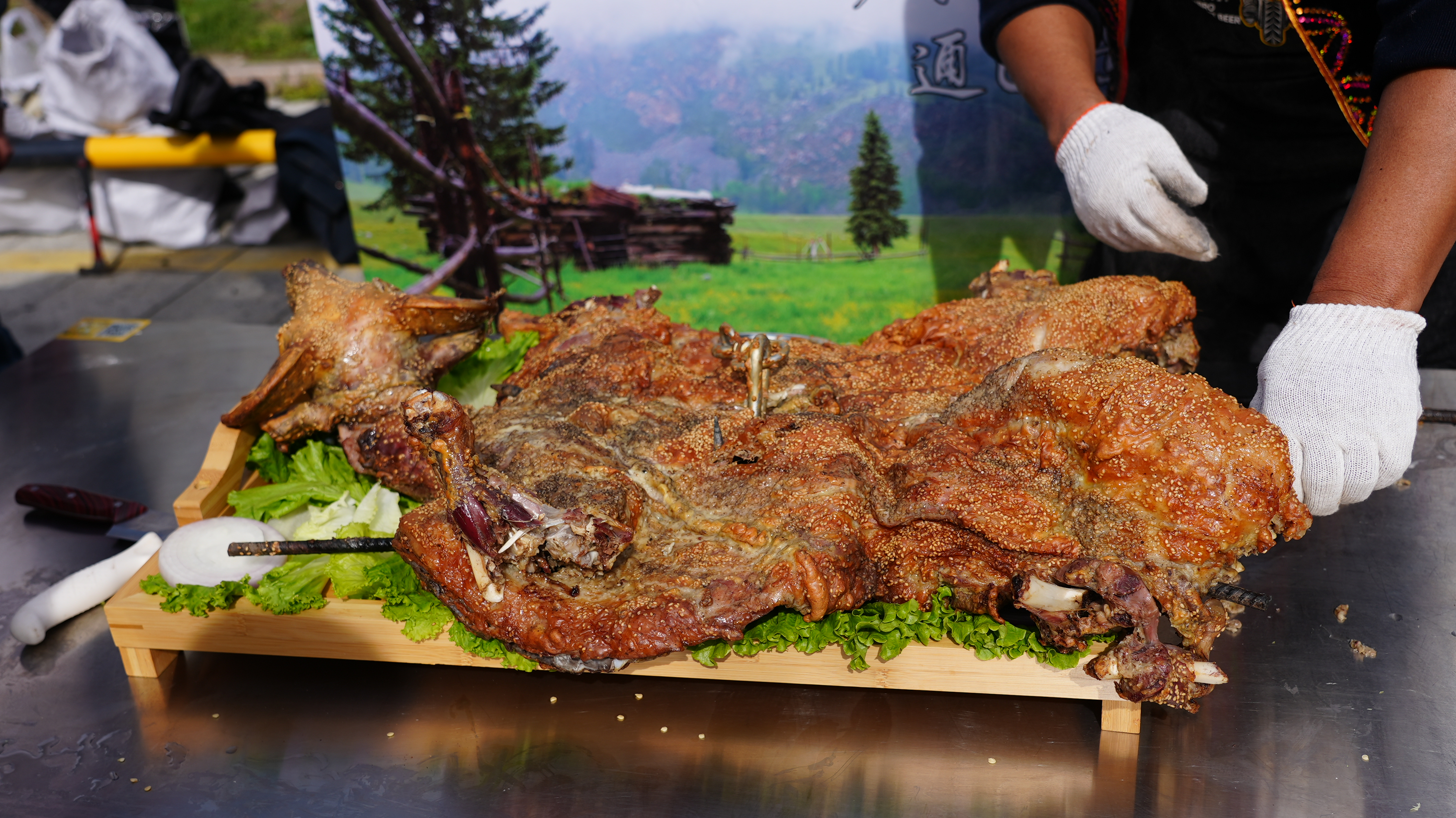 金黄表皮裹鲜香 阿勒泰羊烤全羊成丰收节“舌尖焦点”