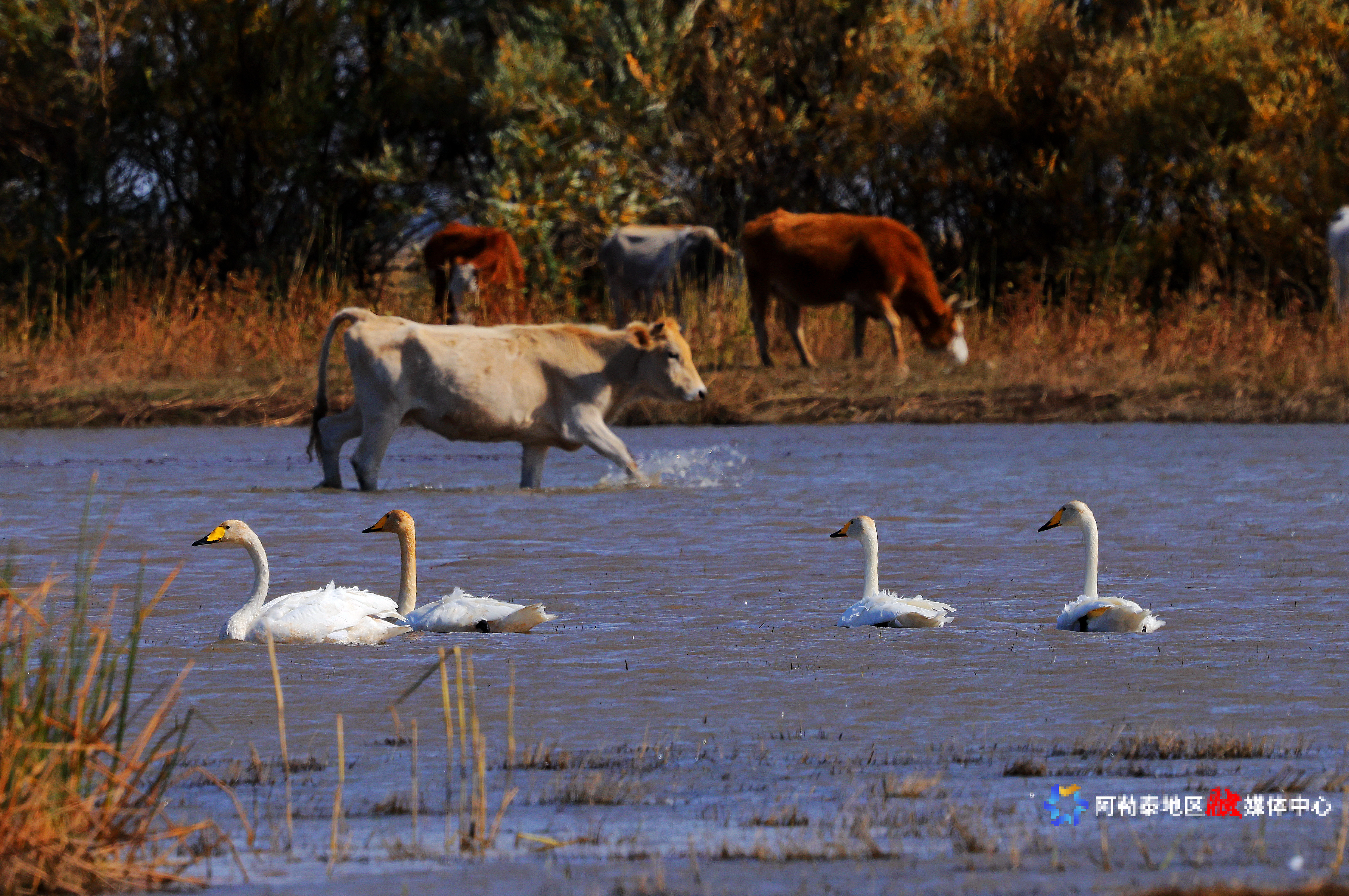 据了解,阿勒泰科克苏湿地国家级自然保护区是集河流、湖泊、沼泽、草甸、草原、荒漠等多种生态景观类型于一身的重要的复合生态系统,是新疆北部戈壁荒漠中最大的沼泽湿地。保护区内不仅水草丰美,滋养着成群的牛羊,更是众多候鸟迁徙途中至关重要的栖息地和“加油站”。
