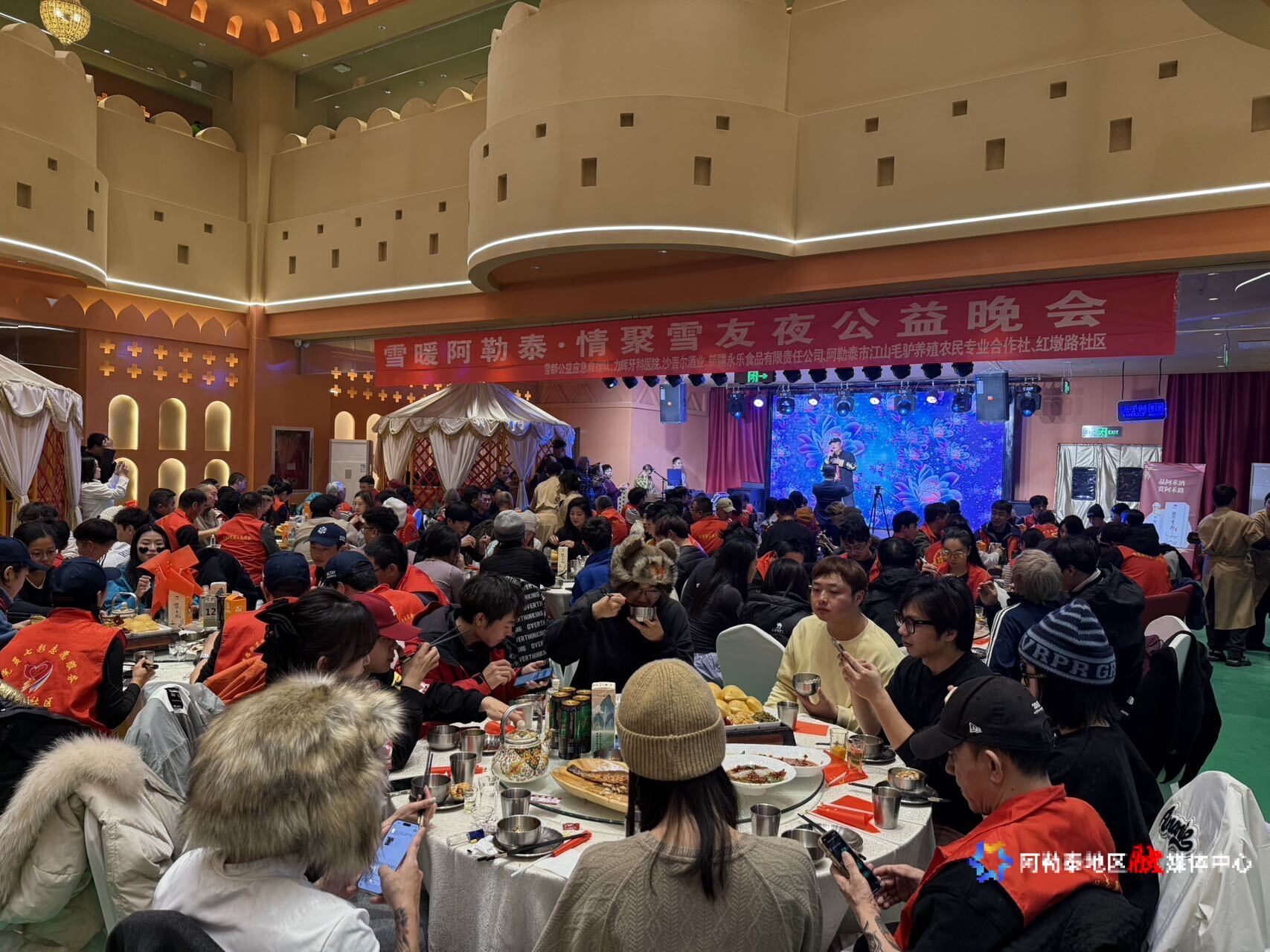 阿勒泰新闻网-阿勒泰地区融媒体中心(记者 古扎丽·阿布都热西提 阿丽娜·阿依登)12月5日晚,一场名为《雪暖阿勒泰·情聚雪友夜》的公益晚会在阿勒泰市“大美新疆·雪都味道”餐厅温情举办。