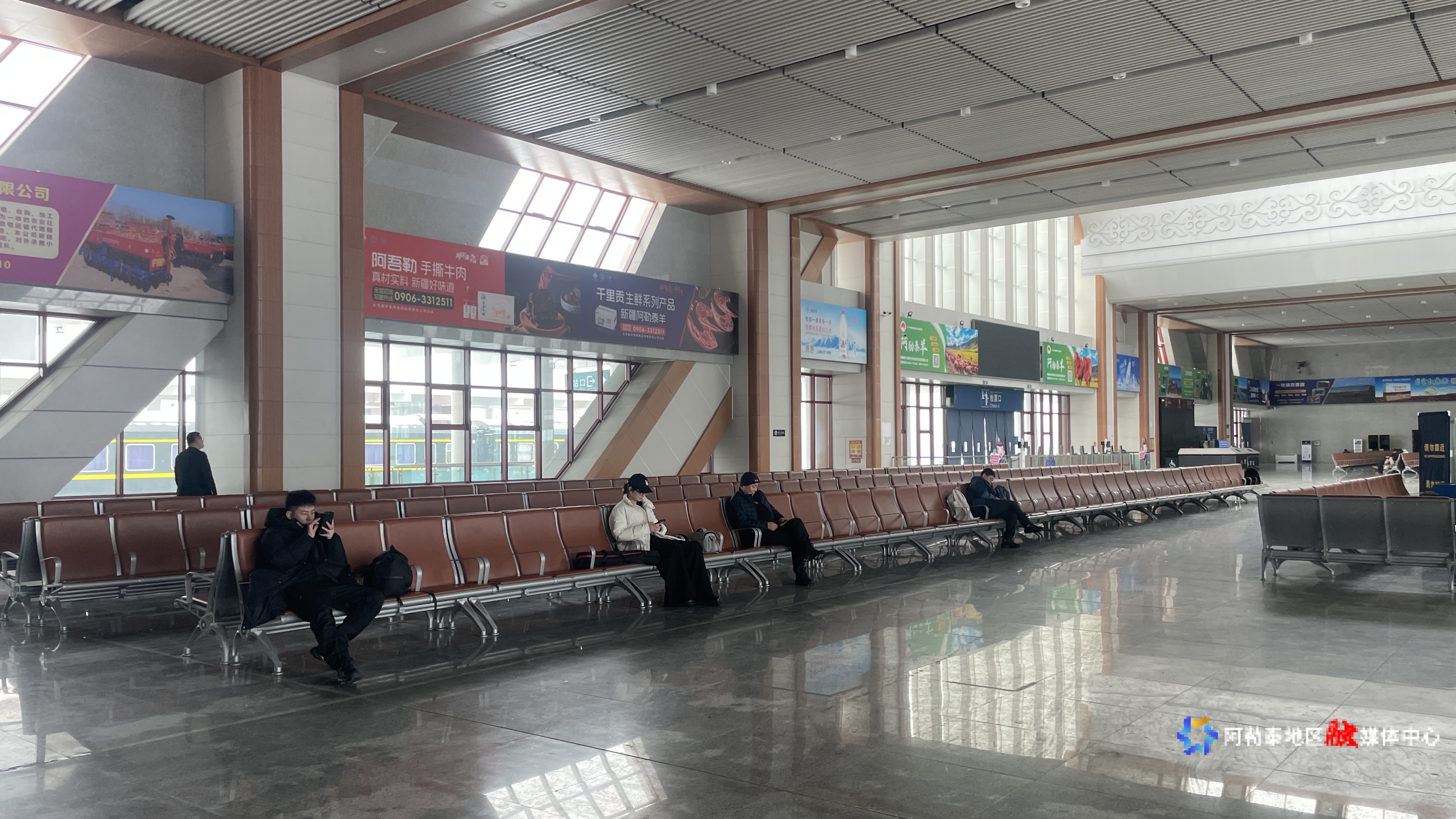 刚结束清洁工作无列车驶入驶出时段的阿勒泰火车站候车厅。