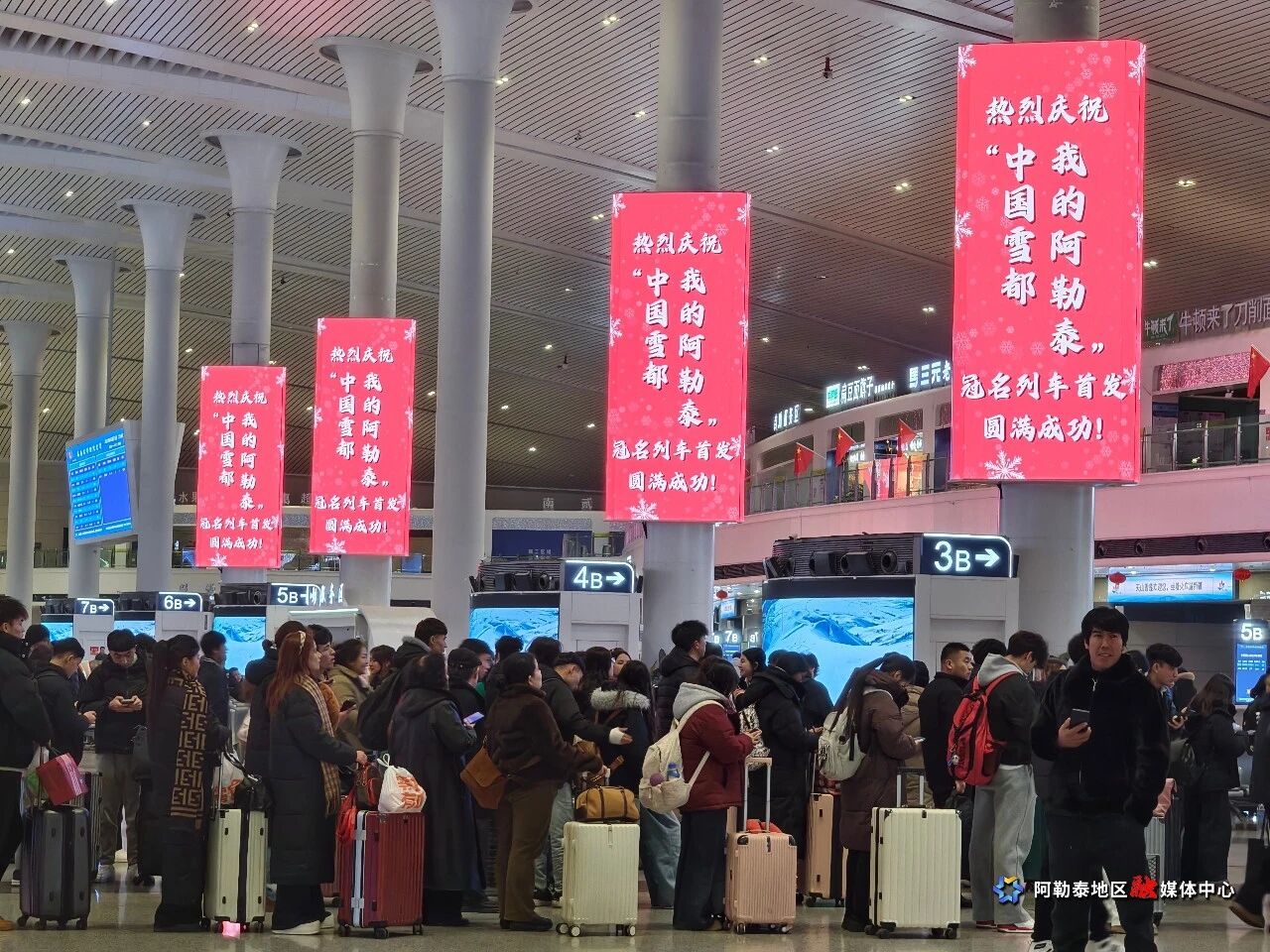 阿勒泰新闻网-阿勒泰地区融媒体中心(记者 古丽娜 通讯员 穆志鹏)2025年12月31日23时40分,新疆铁路部门以冰雪为主题全新打造的首趟“中国雪都·我的阿勒泰”号旅客列车由乌鲁木齐站鸣笛启程,300余名旅客乘坐火车一路向北,将在9小时20分后,迎着新年的朝阳抵达雪都阿勒泰,为新疆冰雪经济注入新活力。