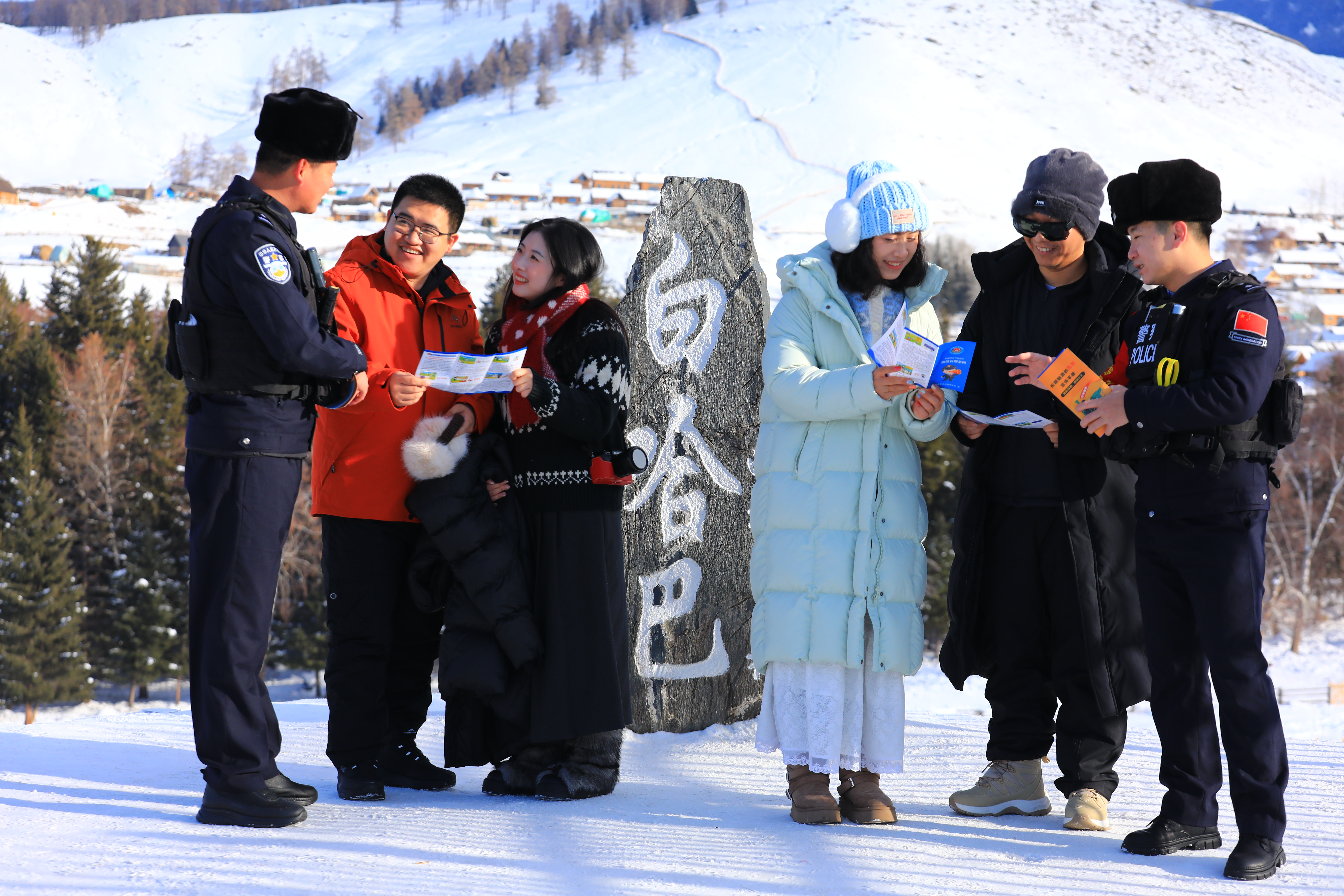 1月6日,白哈巴边境警务站民警在景区内开展边境法律法规宣传和边境巡逻踏查任务。该警务站民警韩云超说:“扎实做好普法宣传和边境巡查等工作,能够为游客创造更加安全舒适的旅行体验,同时也为驻地经济发展提供助力。”