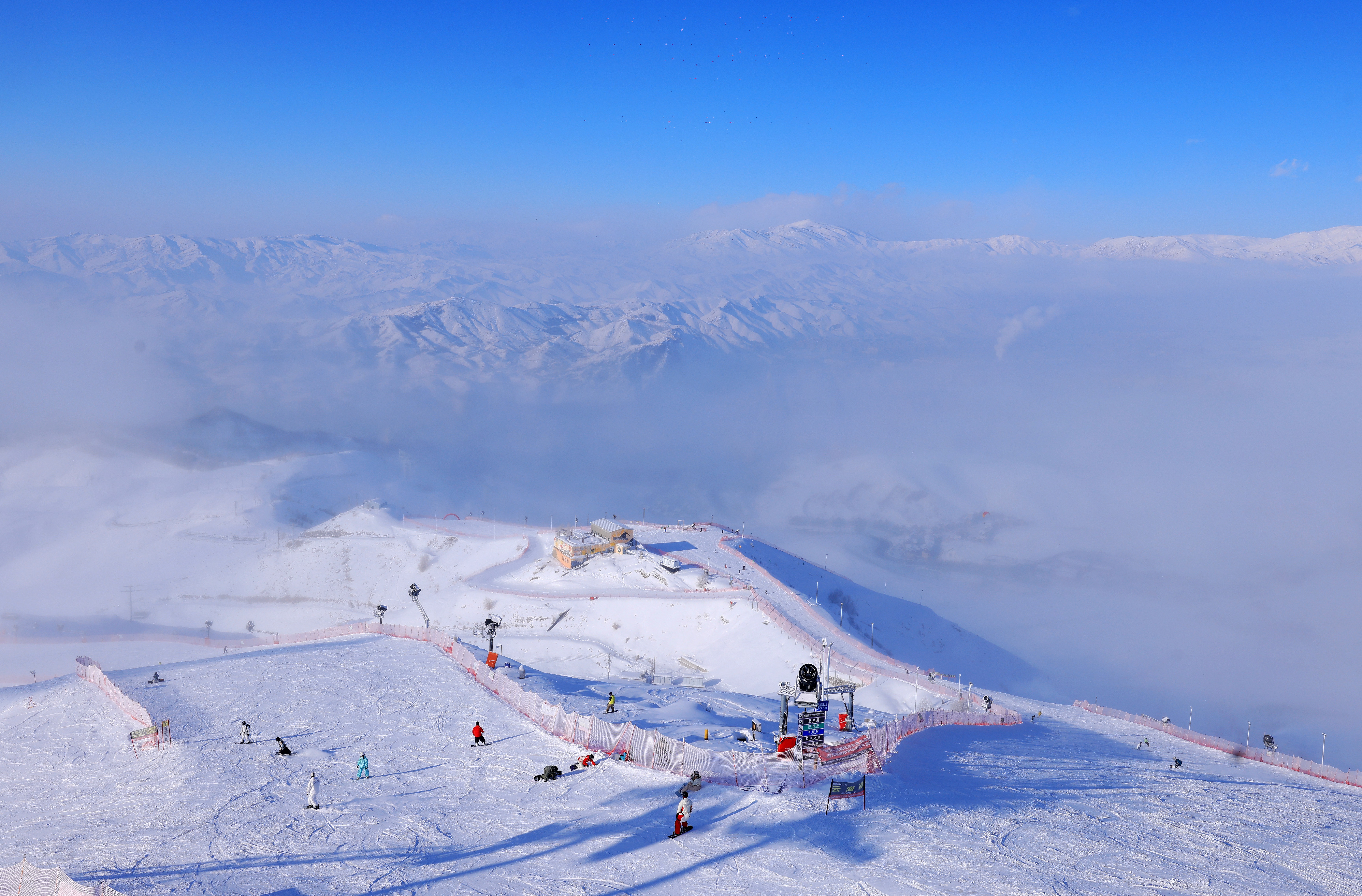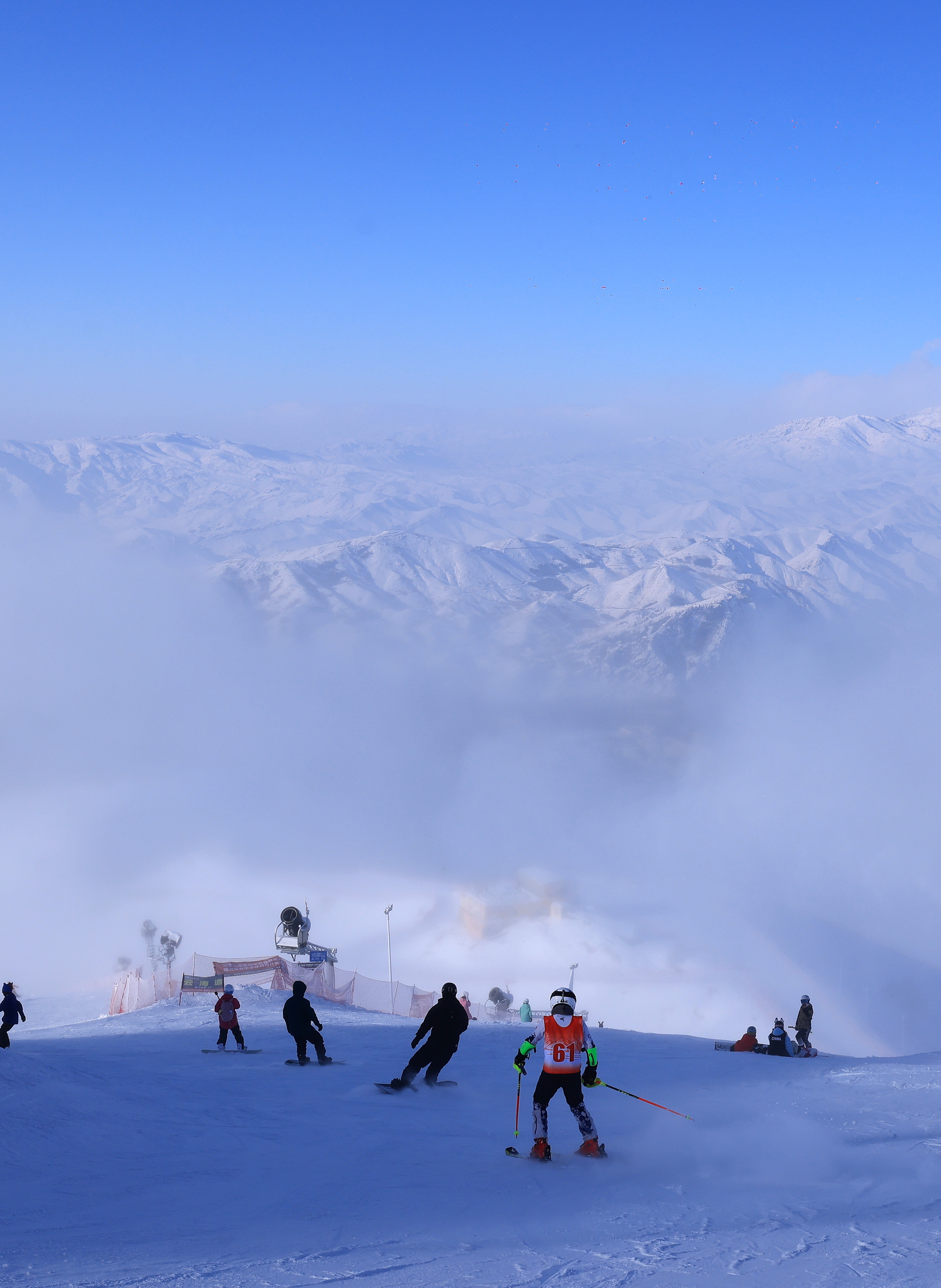 2026年1月8日,阿勒泰将军山国际滑雪度假区云海绕山城,景美如画,引滑雪爱好者奔赴打卡。