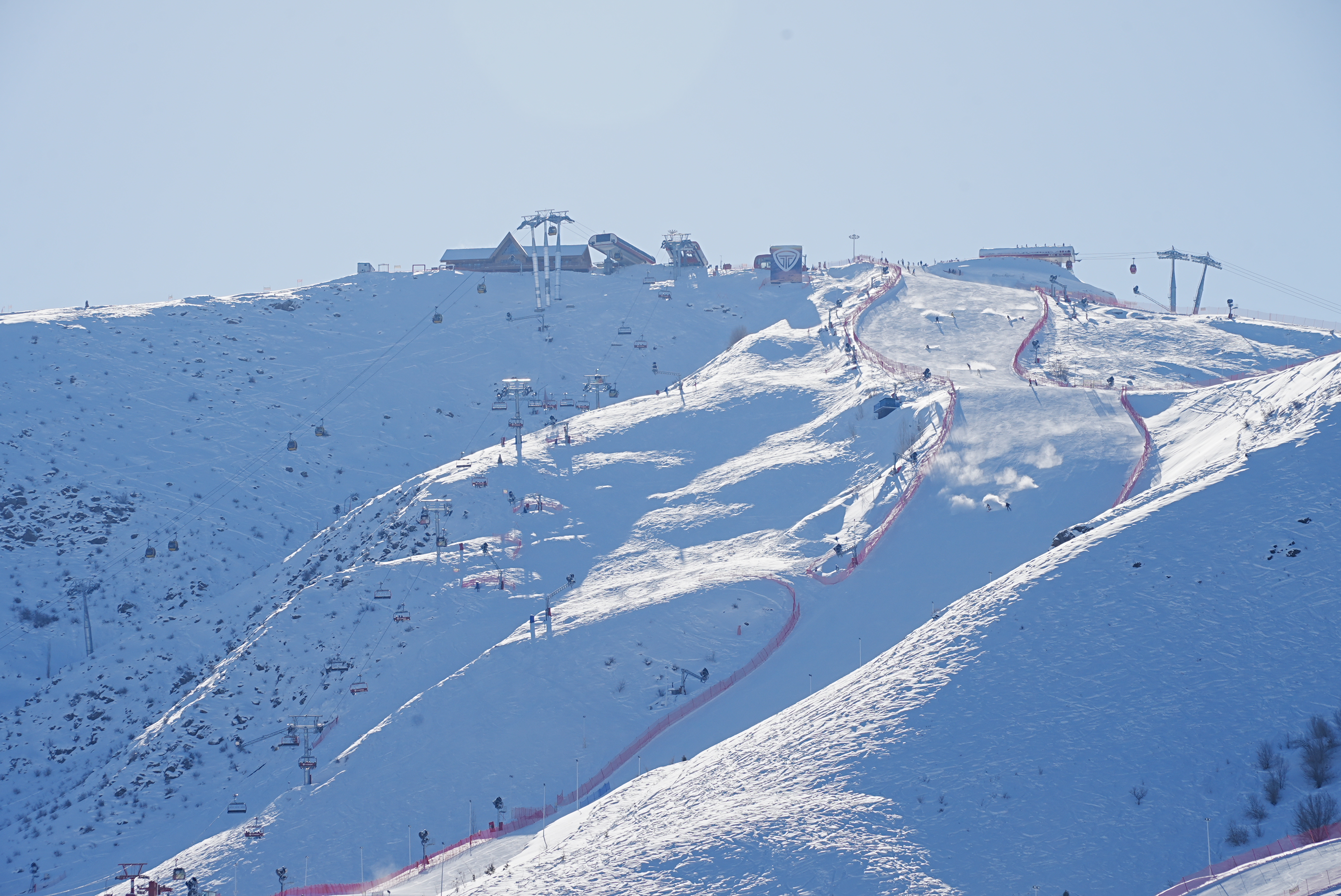 滑雪爱好者在阿勒泰将军山国际滑雪度假区畅滑粉雪。