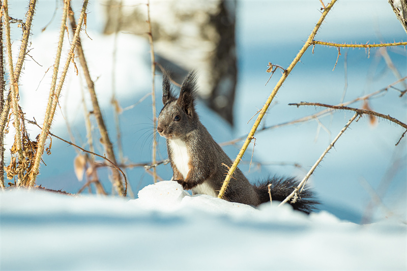 小松鼠在林间自在撒欢。