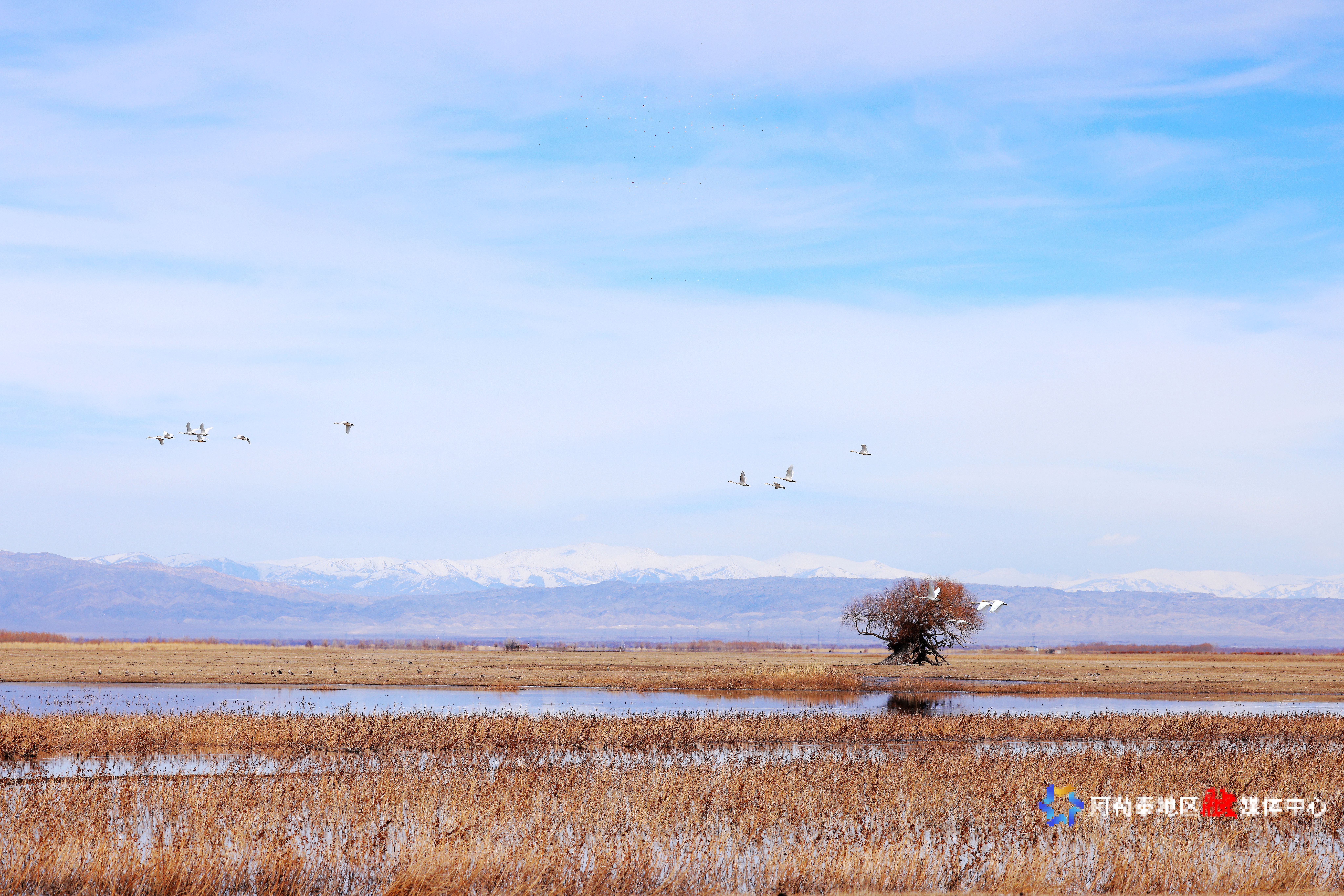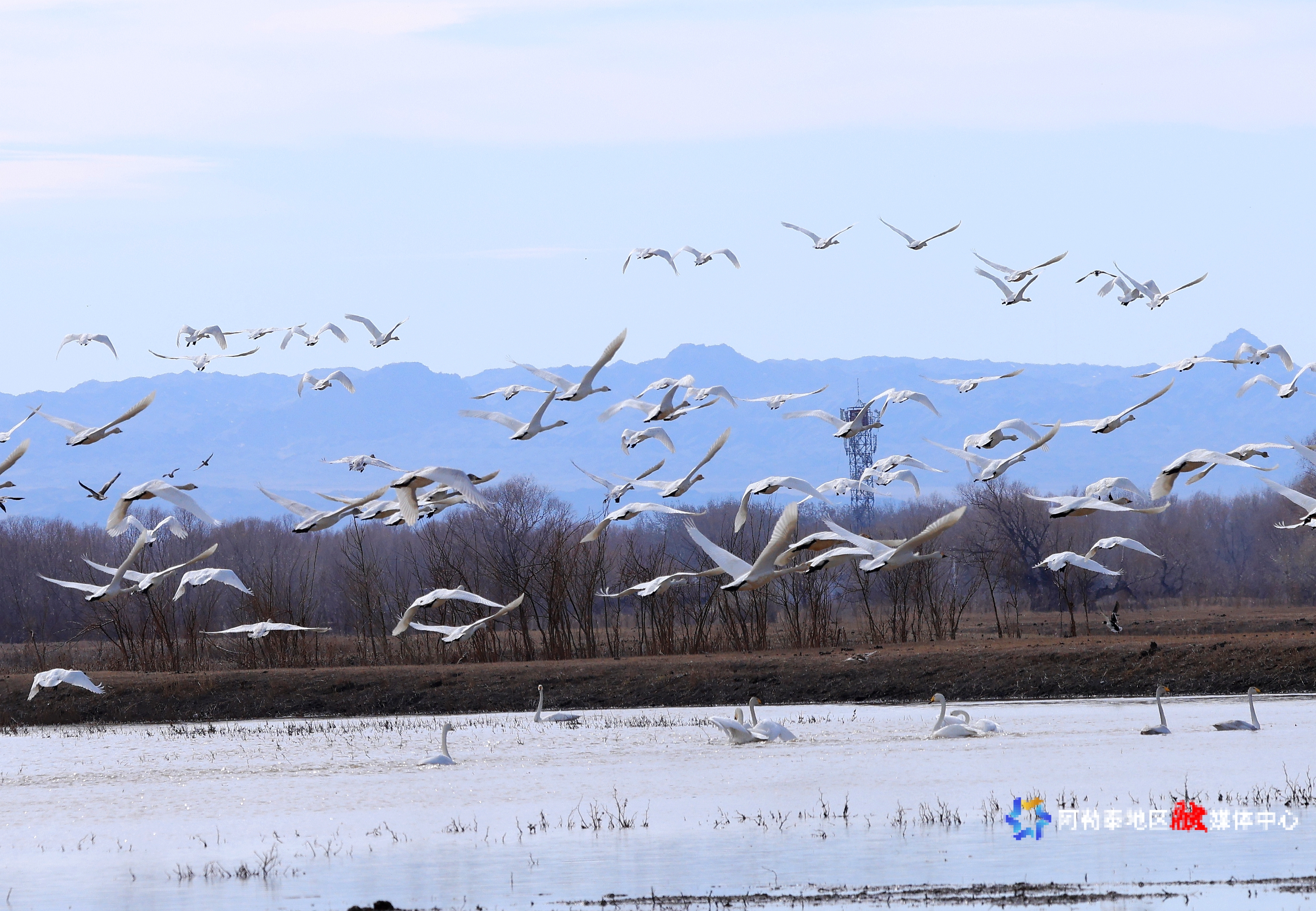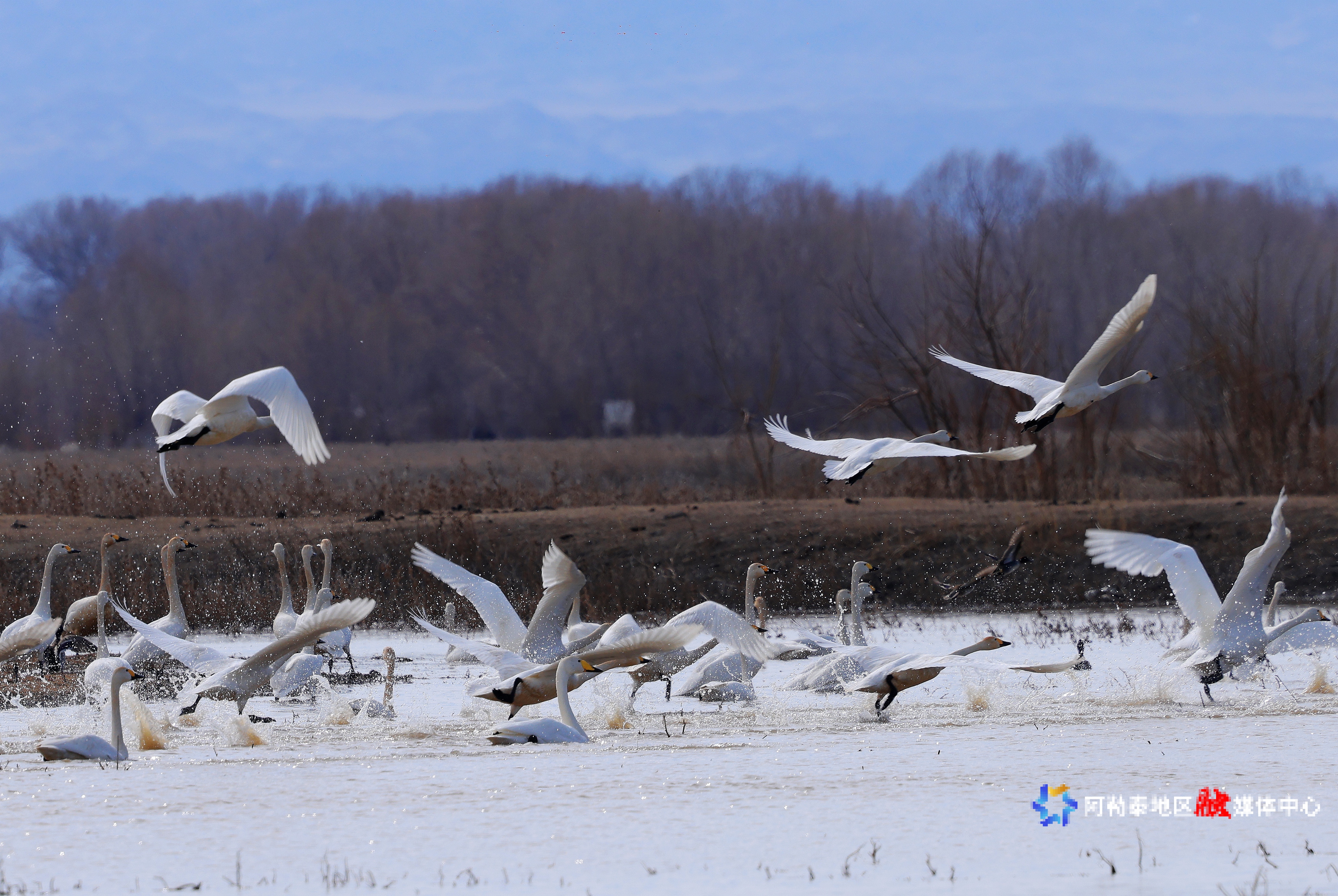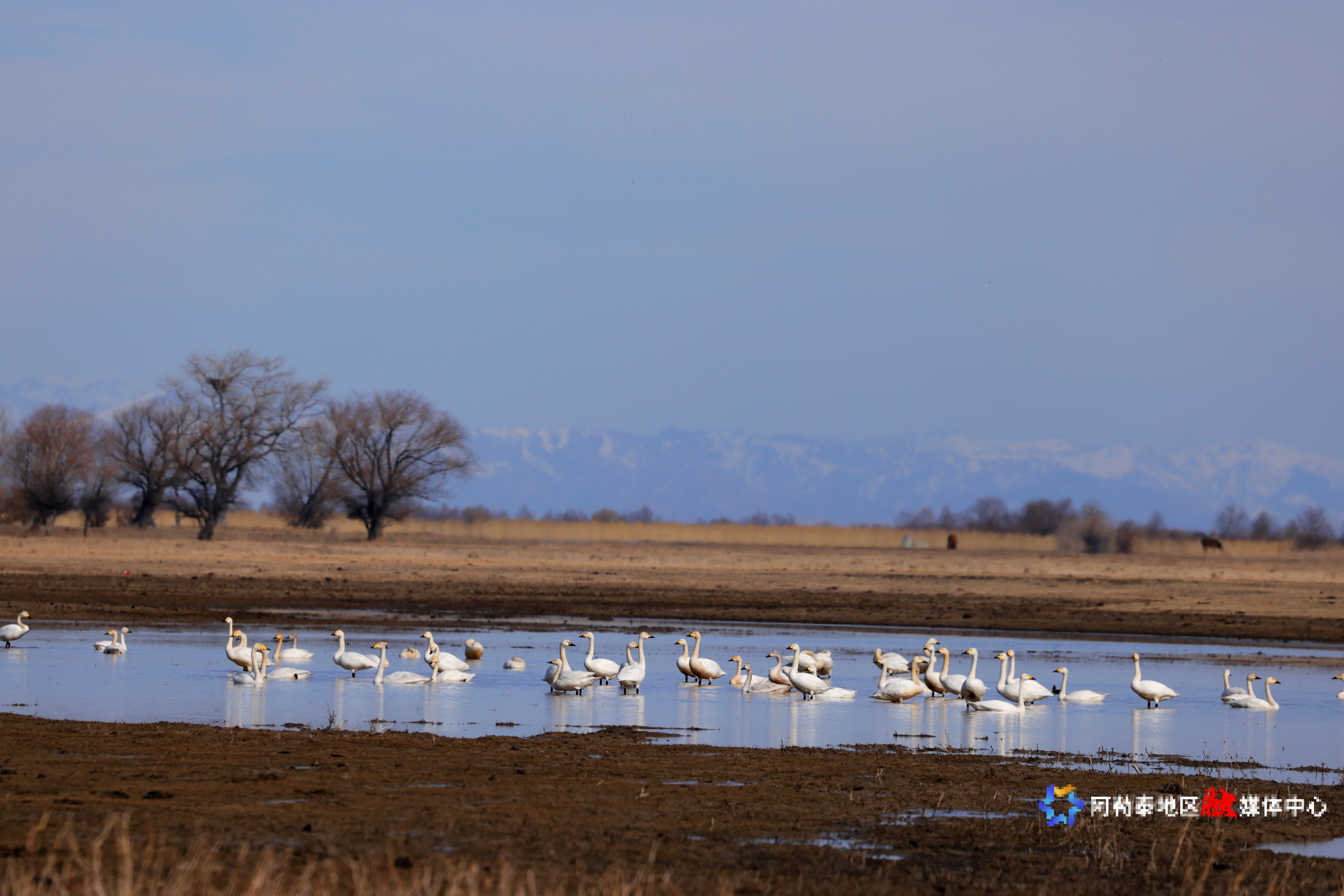 天鹅从南方迁徙归来