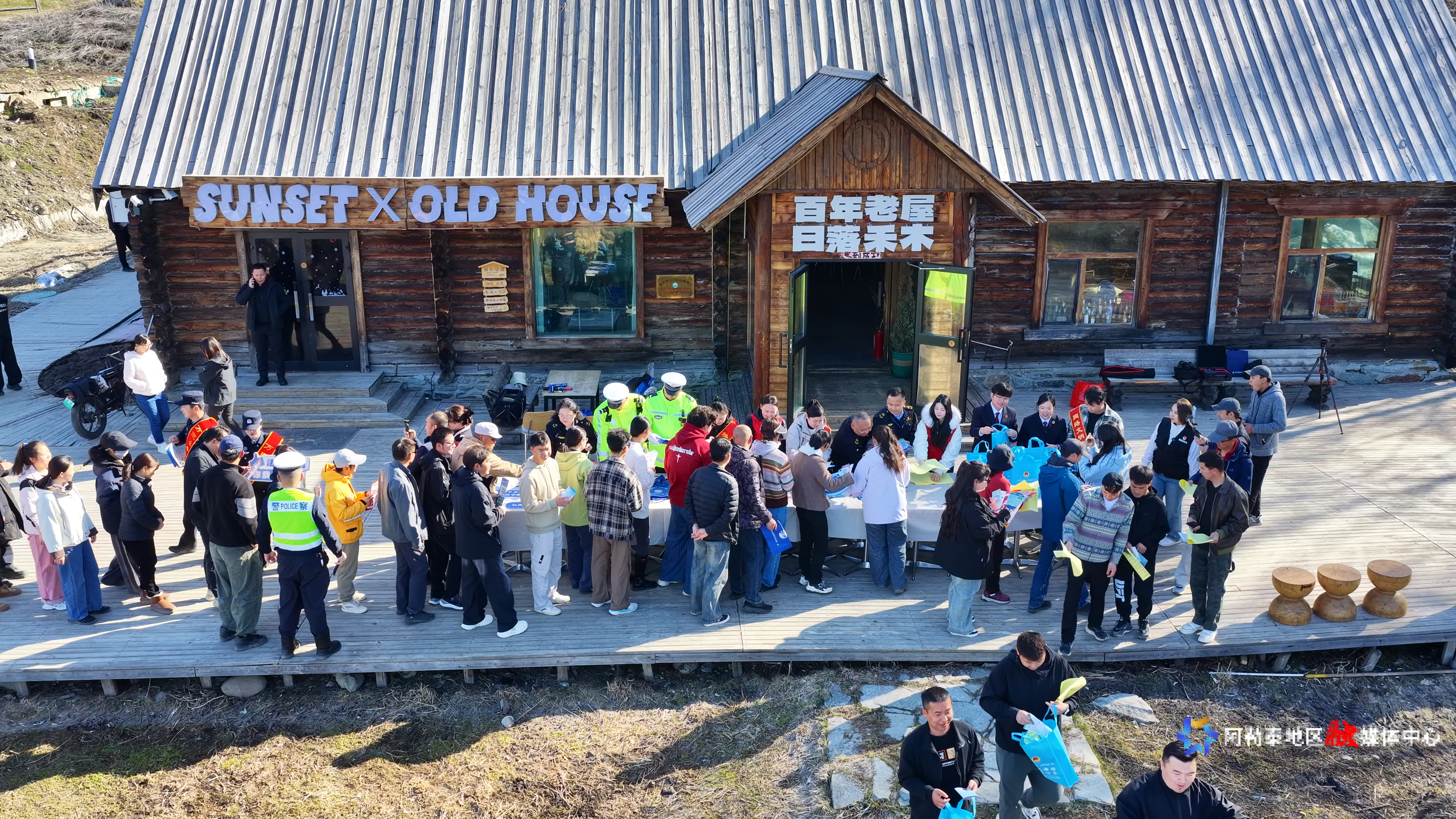 百年老屋原木垒筑、古韵悠然,作为禾木特色文化符号,成为此次普法宣传的特色阵地。活动现场,法治宣传展板沿老屋两侧整齐陈列,普法民警、法律明白人化身宣传员,围绕相关法律法规,结合边境管控、民宿经营、游客出行、矛盾纠纷化解等实际场景以案释法,用通俗易懂的语言讲解法律要点,吸引过往群众驻足聆听。
