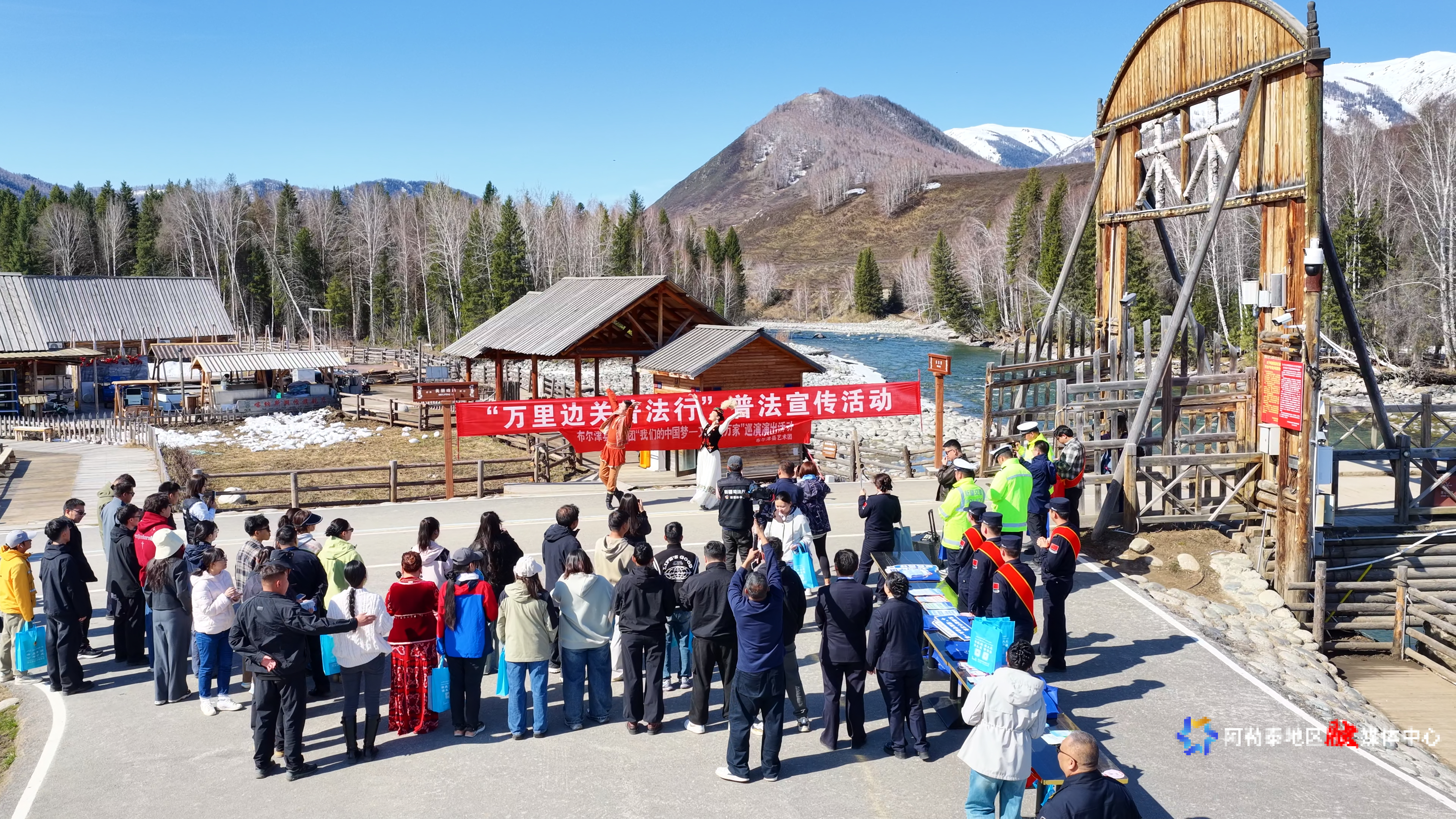 阿勒泰新闻网-阿勒泰地区融媒体中心(记者 杨玮璇 实习记者 王景鸿)4月21日,“万里边关普法行”实地普法宣传活动走进布尔津县禾木喀纳斯蒙古族乡,在当地特色文化地标百年老屋前火热开展。活动立足边境牧区与旅游景区双重定位,将法治宣传与民俗文化、文旅场景深度融合,以趣味互动转盘答题、创意打卡、禾木桥民族舞蹈表演等鲜活形式,让普法接地气、入人心。