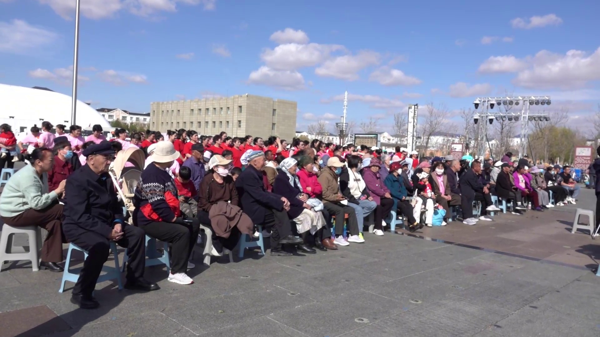 比赛现场,各代表队队员身着盛装、精神抖擞,伴随着欢快激昂的旋律,依次登台献艺。比赛分为必选曲目和自选曲目两大项,必选曲目《中国范》和自选曲目《东方红》《精忠报国》《青春踢踏》《月光》等节目轮番上演,既有传统民族舞蹈的灵动韵味,又有现代广场舞的活力风采,编排新颖别致,充分展现了哈巴河县各族群众热爱生活、昂扬向上的精神风貌,以及各民族交往交流交融的生动场景。现场掌声、欢呼声此伏彼起,吸引了各族群众驻足观看。