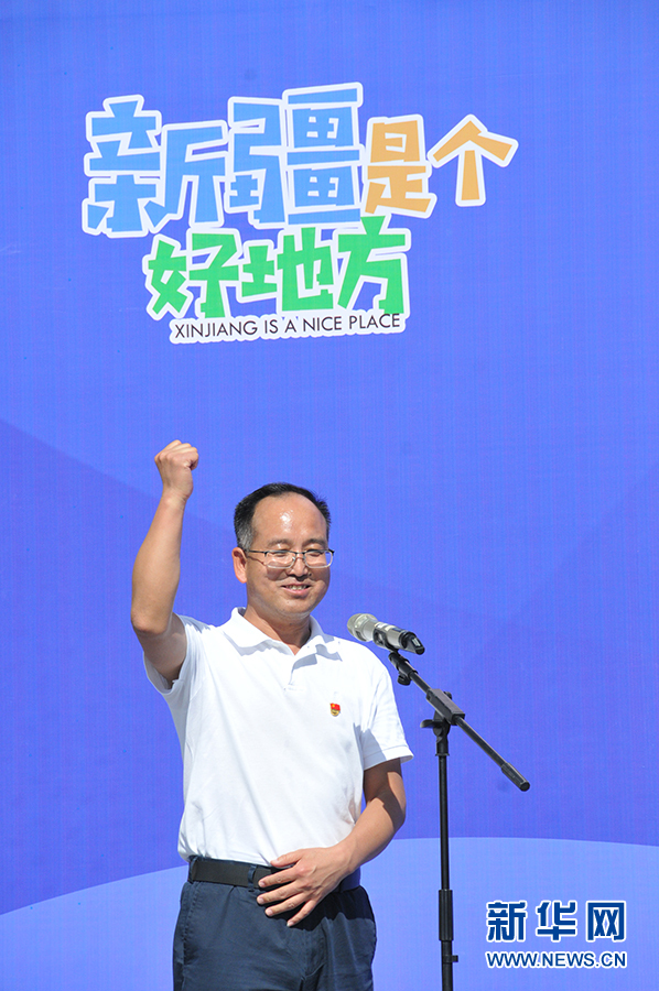 新疆维吾尔自治区党委网信办副主任、援疆干部狄多华在启动仪式上发表热情洋溢的讲话。新华网周远钢摄