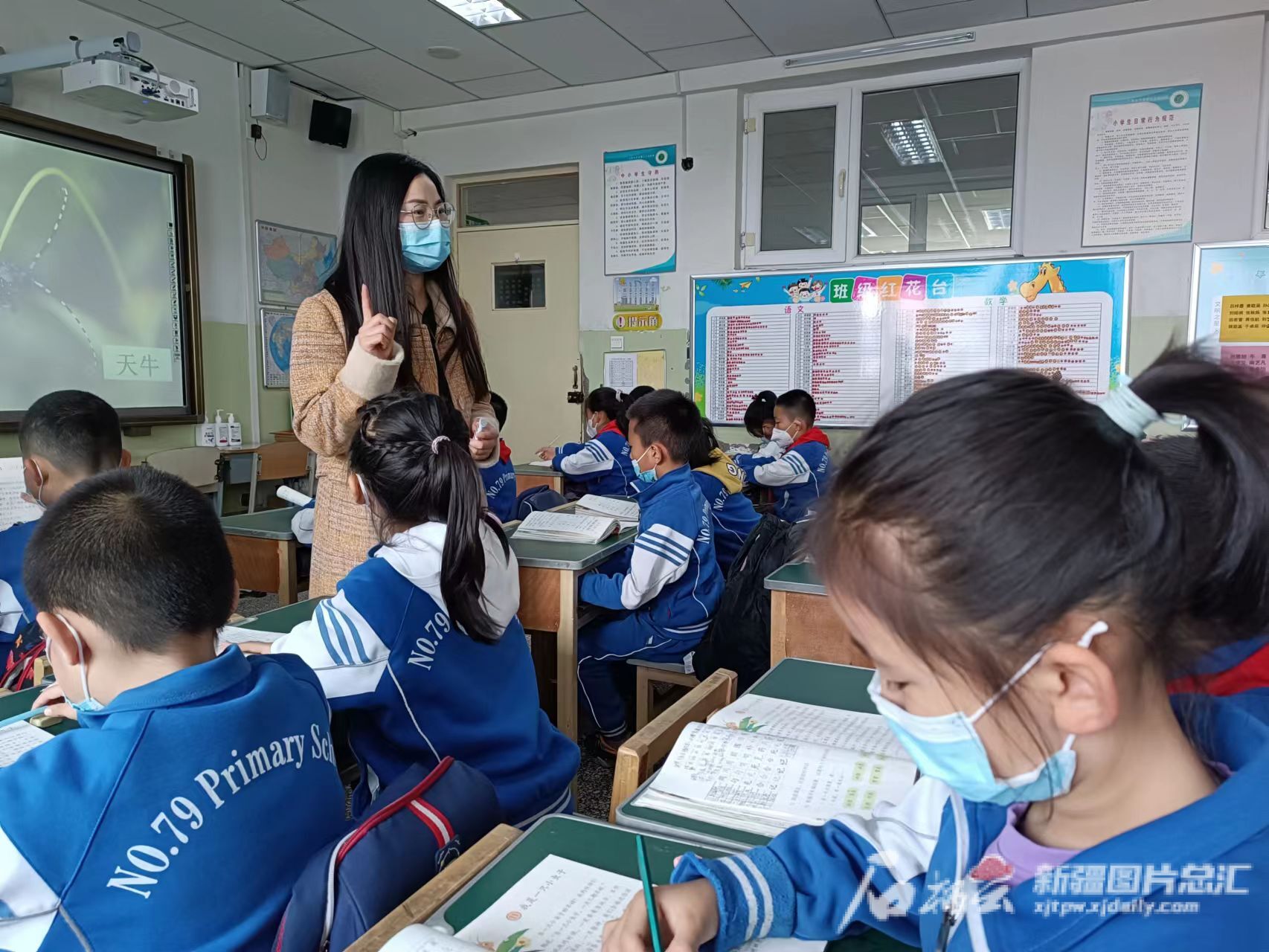 3月31日,乌市第七十九小学,教师带着学生上课。石榴云/新疆日报记者 张冬梅摄