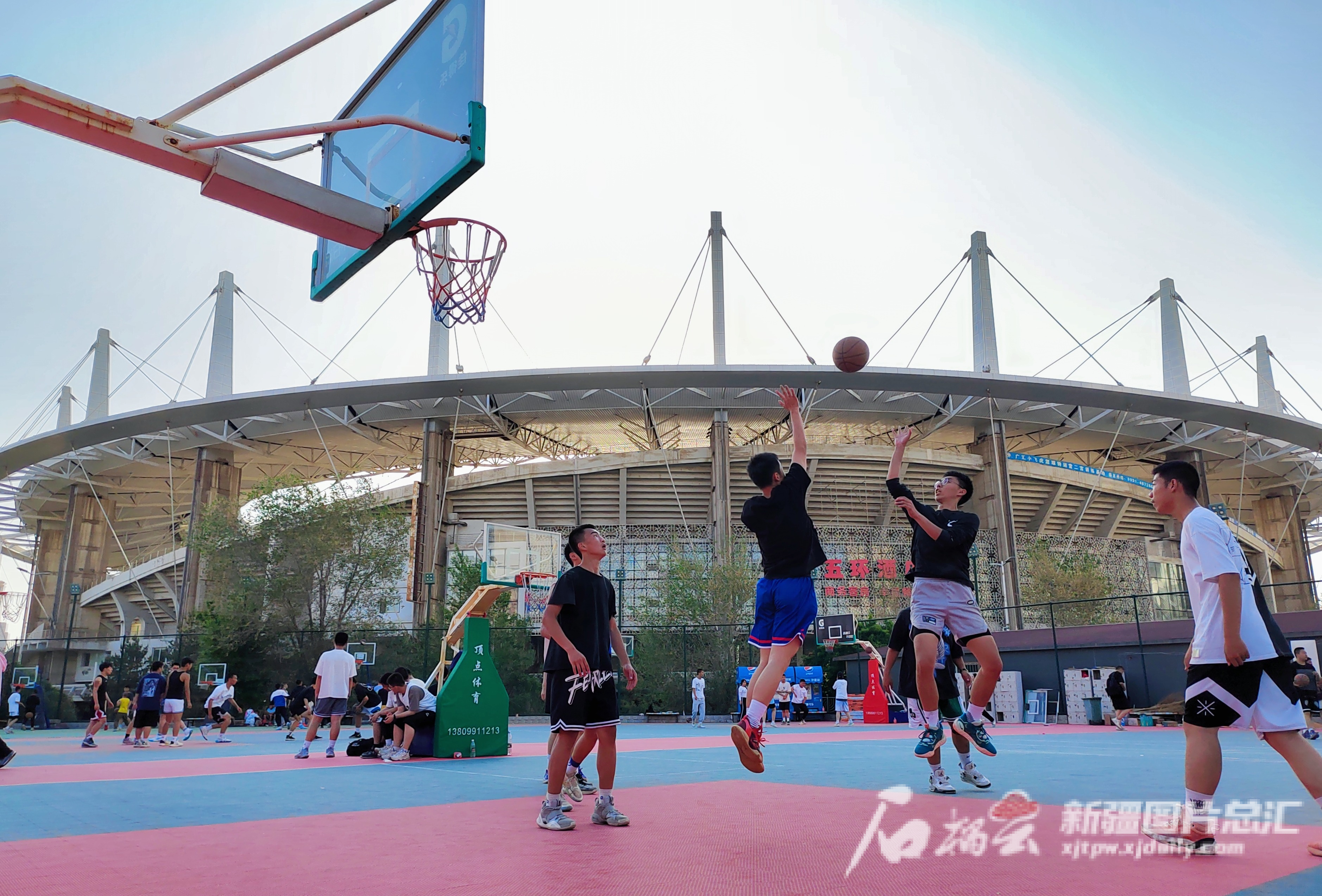 5月13日,篮球爱好者在新疆体育中心悬浮式篮球场挥洒汗水。石榴云/新疆日报记者 董亮摄