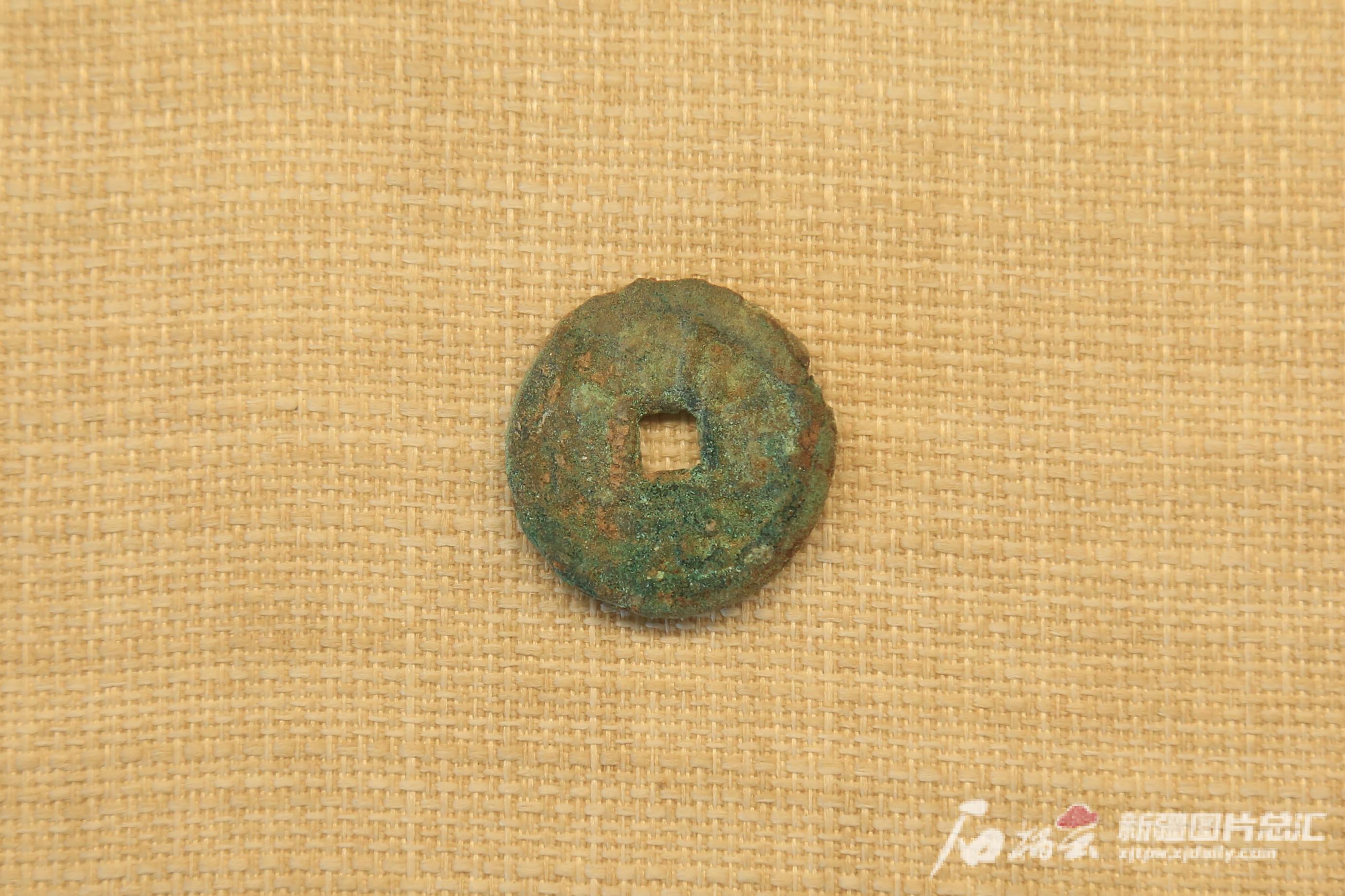 托库孜萨来(唐王城)遗址发掘出土并展出的乾元重宝。贺浩摄