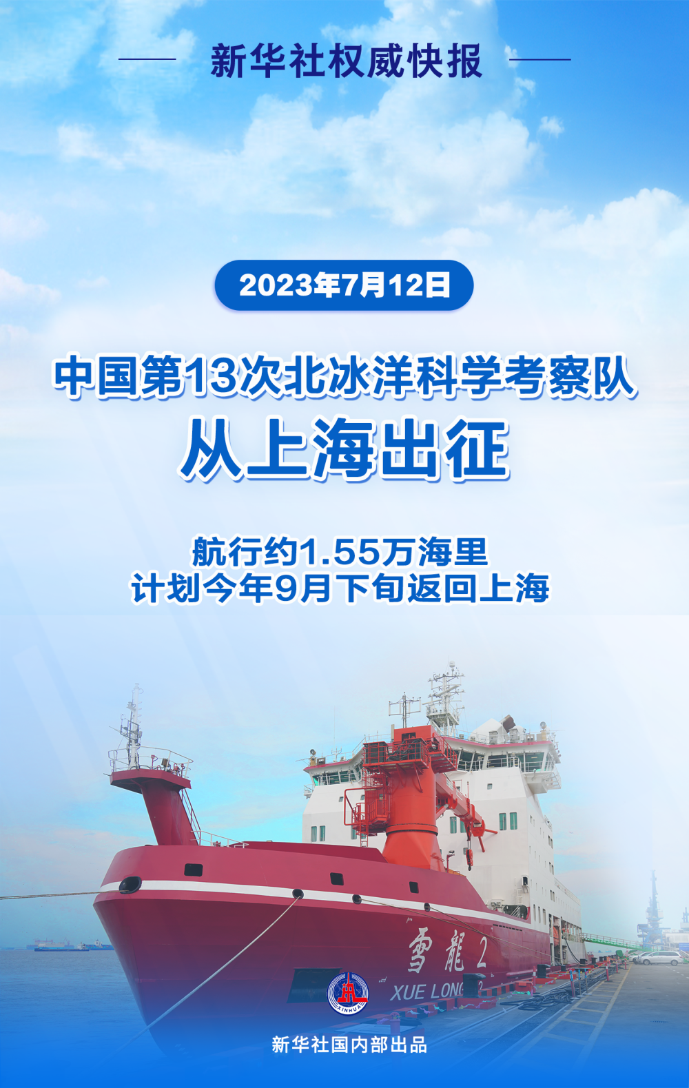 7月12日,由自然资源部组织的中国第13次北冰洋科学考察队,乘坐“雪龙2”号极地科考破冰船,从上海出征,前往北冰洋执行科学考察任务。本次考察预计总航程约1.55万海里,计划今年9月下旬返回上海。