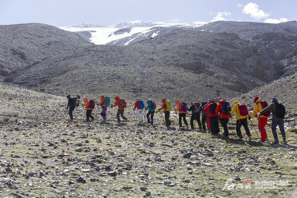 2022年7月,登山爱好者从大本营出发进行适应性训练。 石榴云/新疆日报记者 唐堪东摄