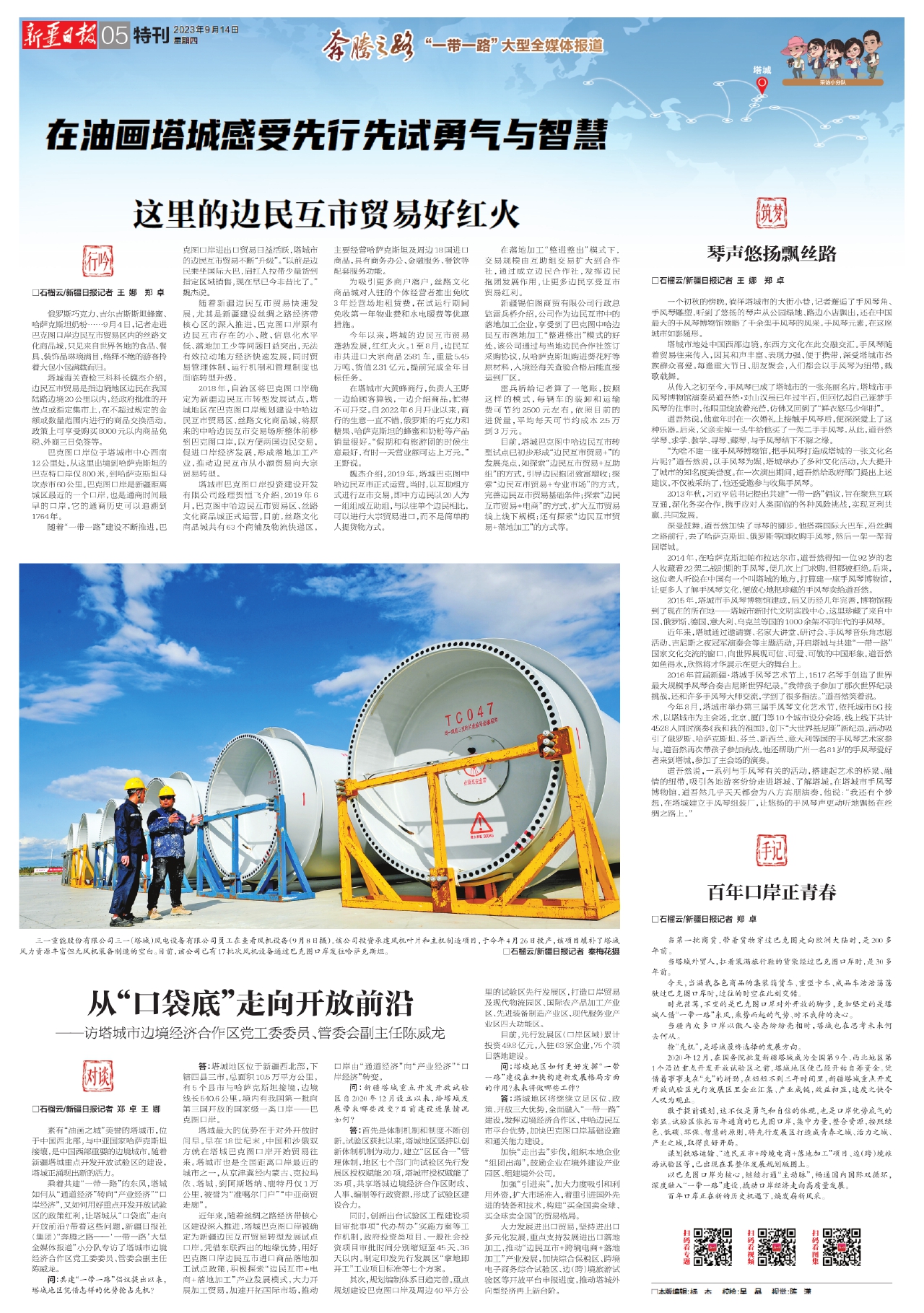 乘着共建“一带一路”的东风,塔城如何从“通道经济”转向“产业经济”“口岸经济”,又如何用好重点开发开放试验区的政策红利,让塔城从“口袋底”走向开放前沿?带着这些问题,新疆日报社(集团)“奔腾之路——‘一带一路’大型全媒体报道”小分队专访了塔城市边境经济合作区党工委委员、管委会副主任陈威龙。