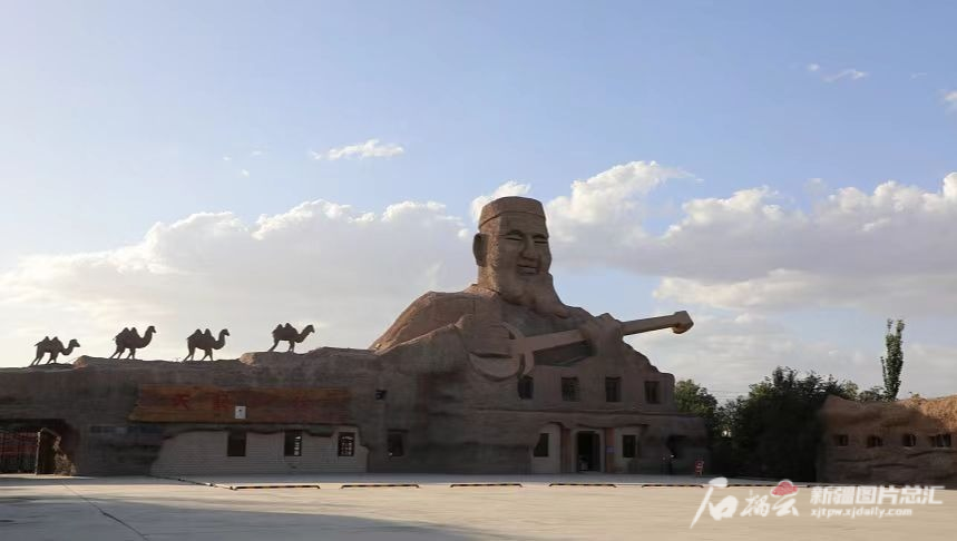 新和县依其艾日克镇加依村,被誉为“中国新疆民间手工乐器制作第一村”,图为村头大型雕塑。郭安东摄