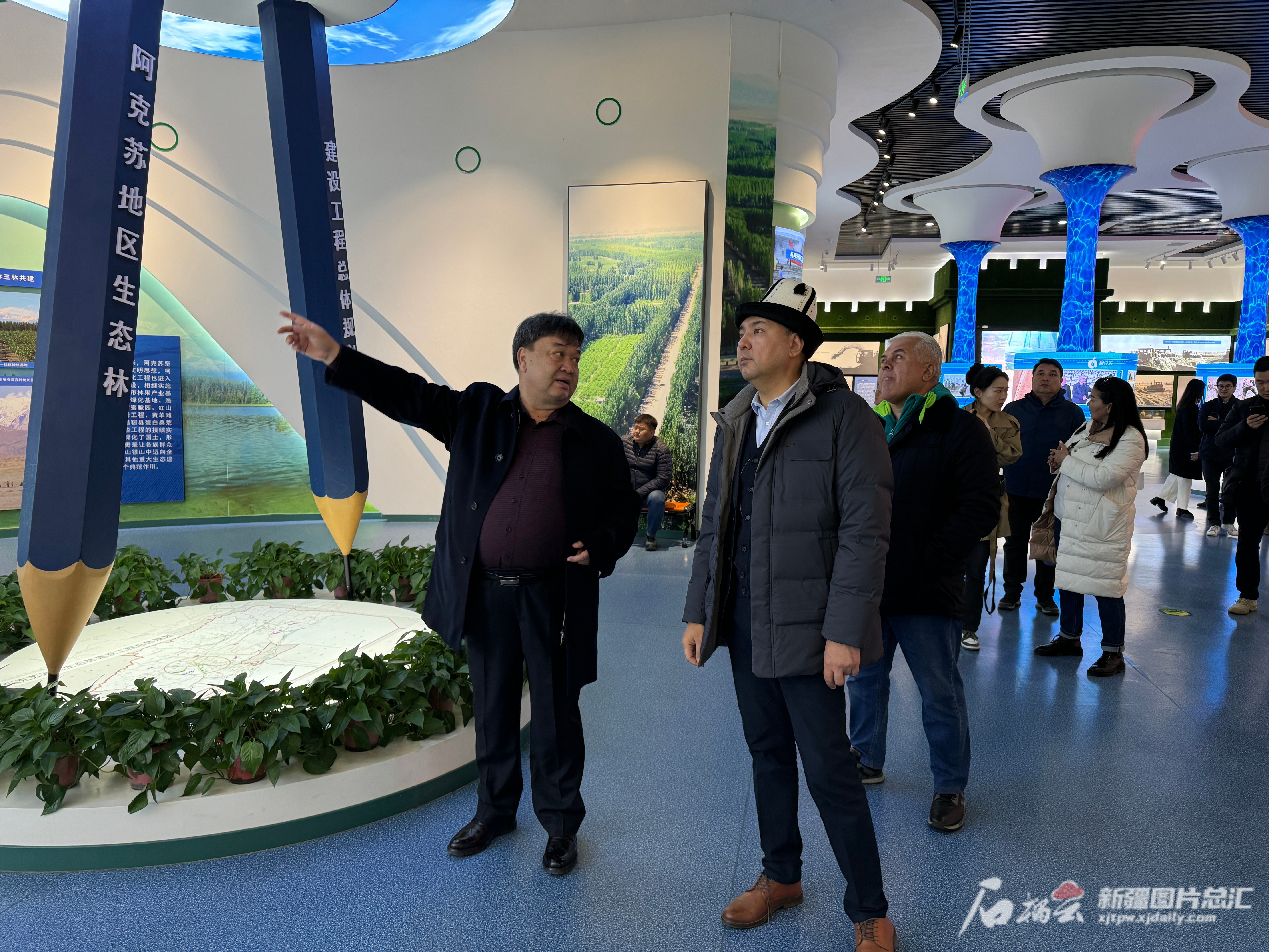 在柯柯牙纪念馆,代表团成员们了解到阿克苏地区人民在荒漠化治理方面的贡献。他们纷纷表示,这不仅是一场生态建设的奇迹,更是中国人民坚持不懈、团结一心的集中体现。上海合作组织副秘书长尼亚扎利耶夫·努兰·萨德罗维奇说:“阿克苏人民为了改善这里的环境,一代人接着一代人干,让荒漠变成了绿洲,这让我想起了‘夸父逐日’,阿克苏人民顽强拼搏的精神让我感到很敬佩。”
