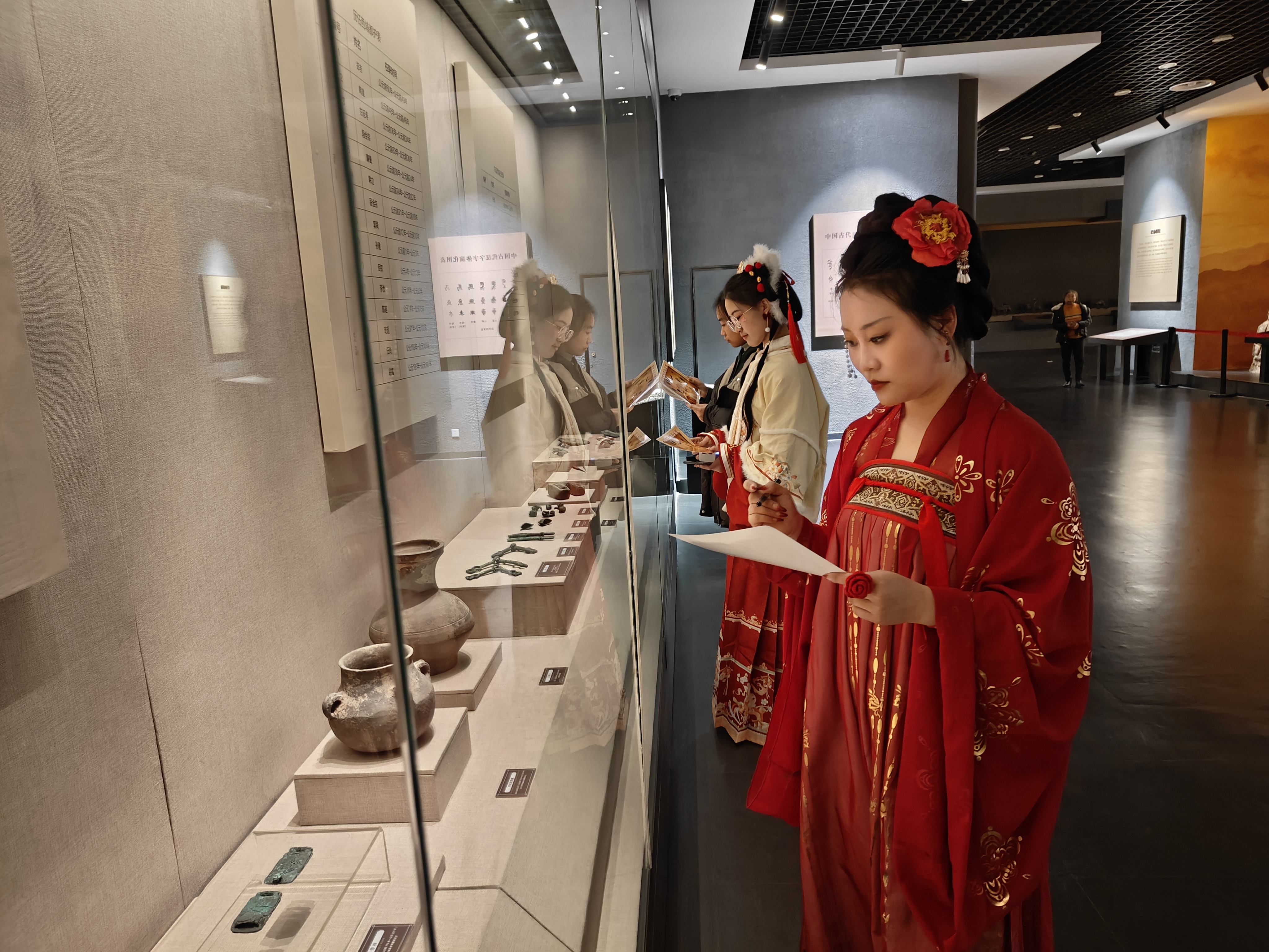 2月6日,阿克苏地区博物馆的《祥龙贺岁——阿克苏地区龙纹文物展》展览现场,观众在根据图片指示在展厅寻找龙文物。徐涌森摄