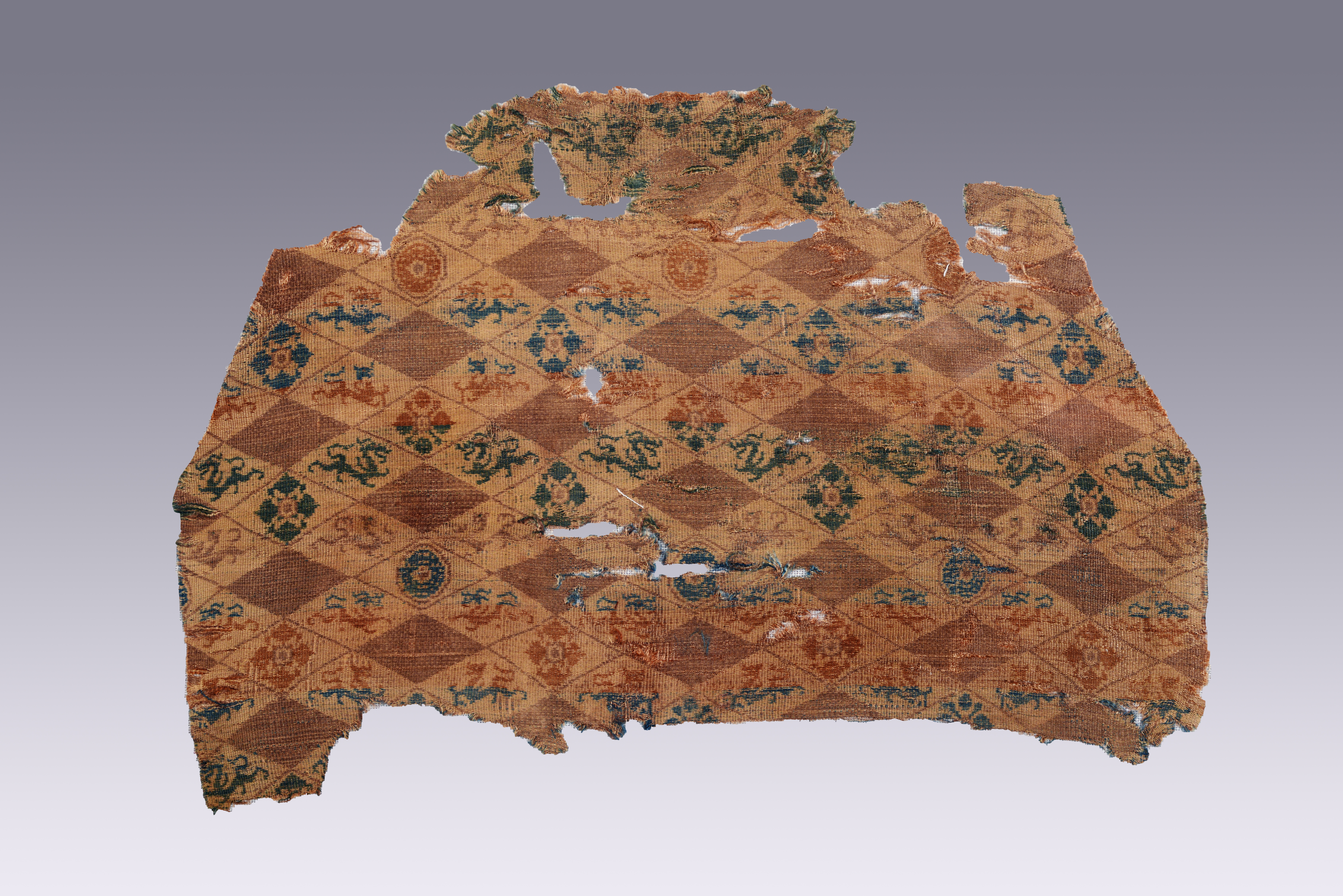 黄地菱格龙璧纹锦。巴音郭楞蒙古自治州博物馆提供