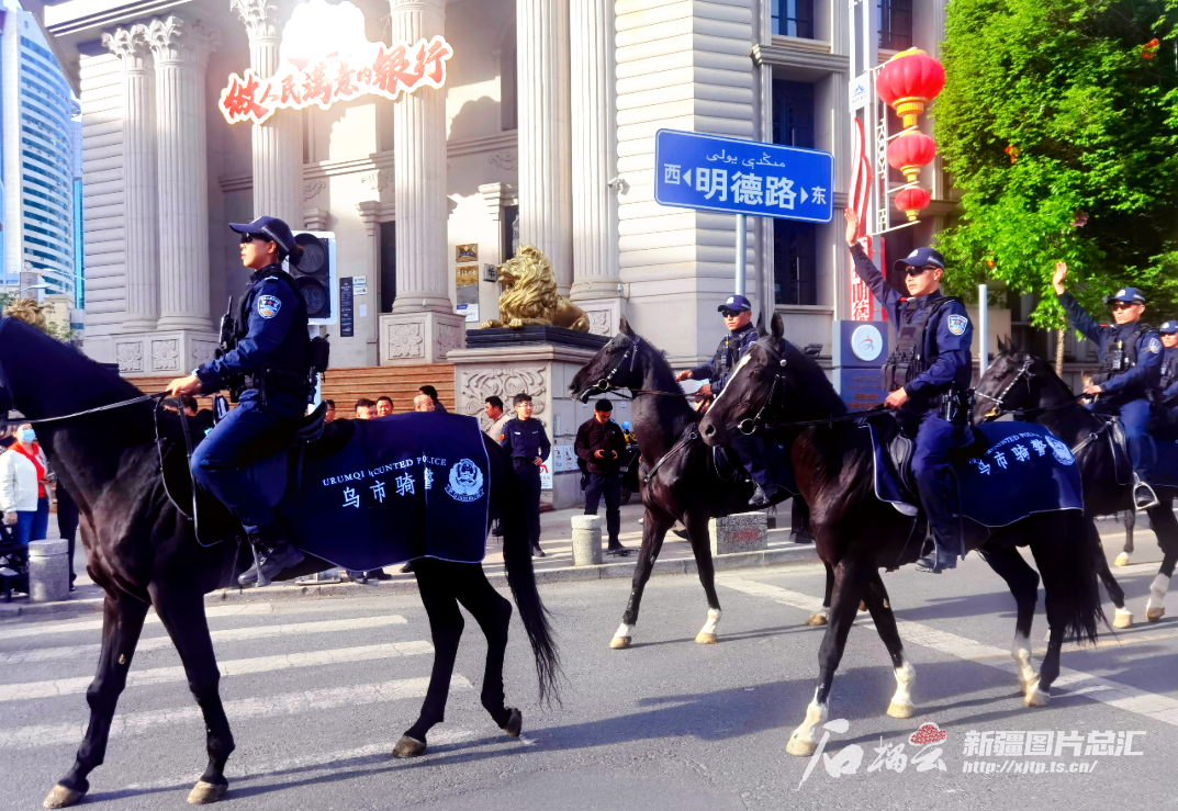 5月3日,特警骑行汗血宝马“炫”街,从乌鲁木齐市明德路出发,经新疆人民剧场,到新疆国际大巴扎。天山网-新疆日报记者 于江艳 摄