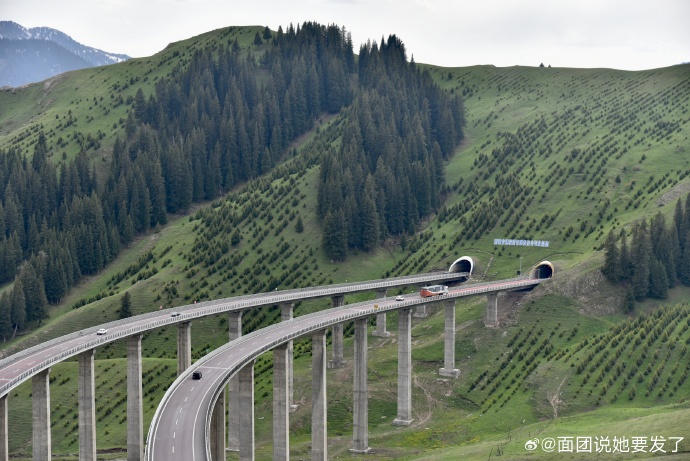 这个如同时光隧道一般神奇的果子沟大桥隧道位于新疆伊犁,它北起蒙琼库勒,上跨果子沟峡谷,南至将军沟隧道,线路全长4.4千米,大桥长700米。