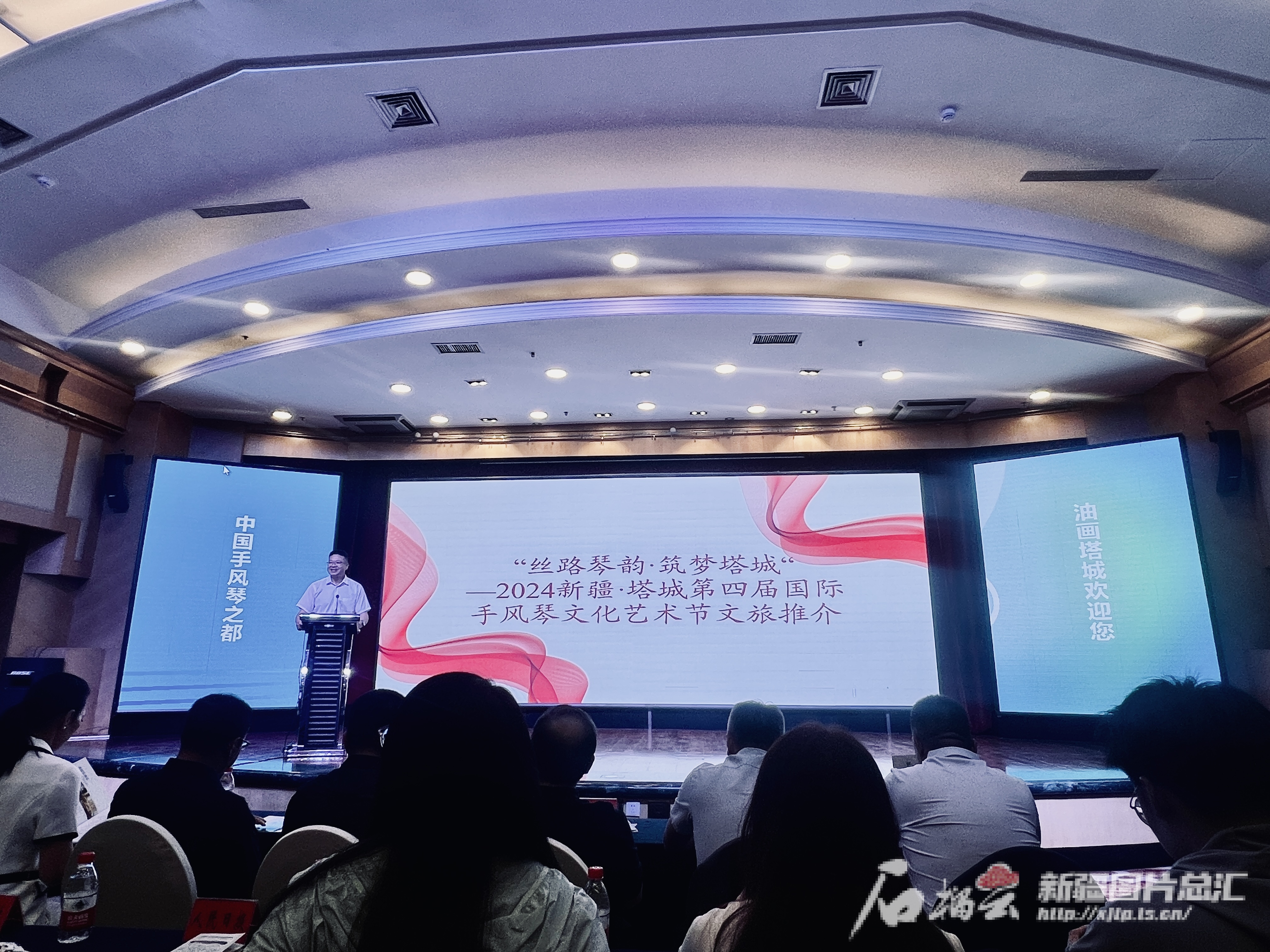6月3日,“丝路琴韵·筑梦塔城”2024新疆·塔城第四届国际手风琴文化艺术节暨塔城市旅游推介会在乌鲁木齐市举行。记者 拍热扎提·阿不都摄