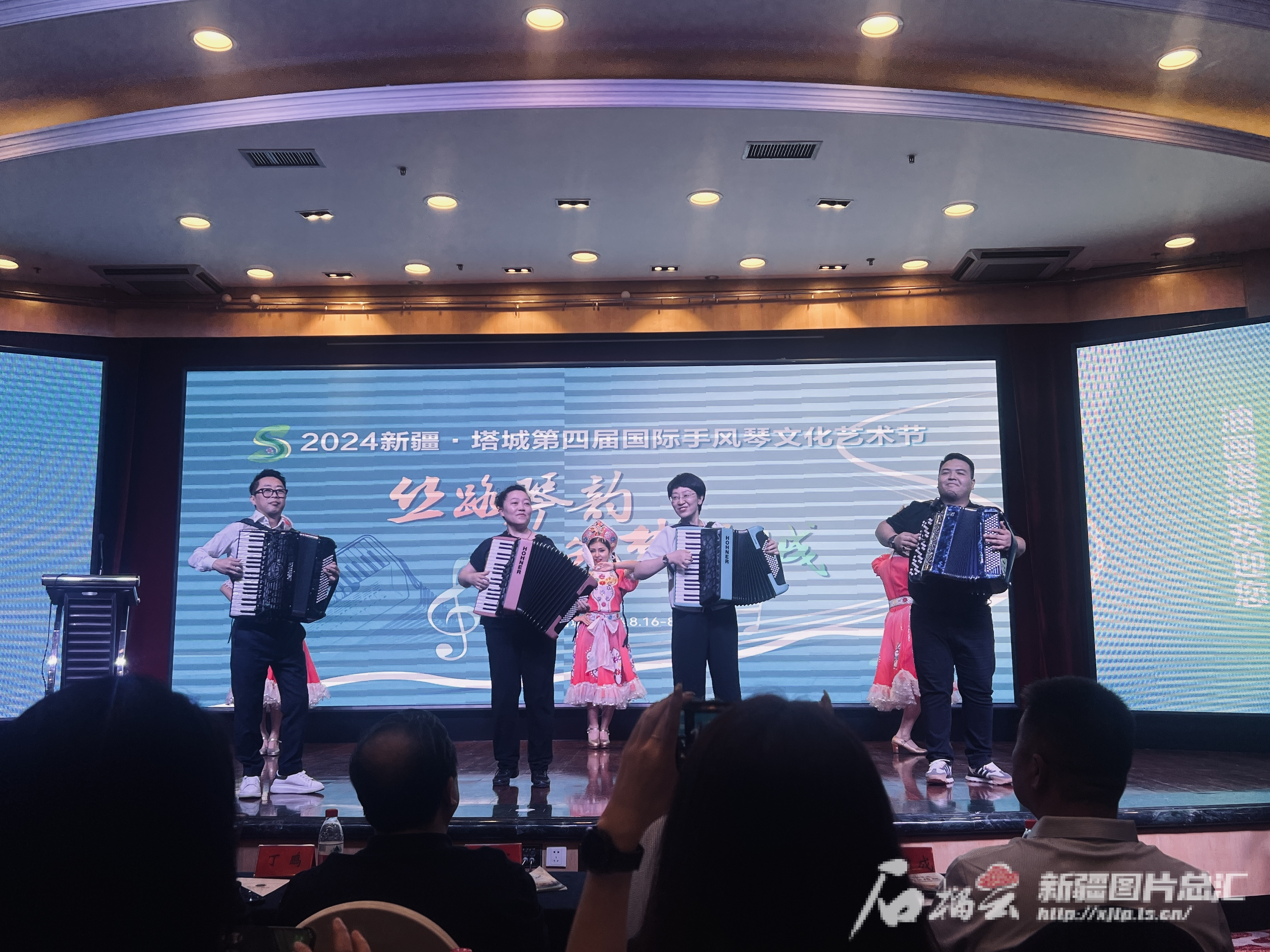 6月3日,在“丝路琴韵·筑梦塔城”2024新疆·塔城第四届国际手风琴文化艺术节暨塔城市旅游推介会上的手风琴歌舞表演。记者 拍热扎提·阿不都摄