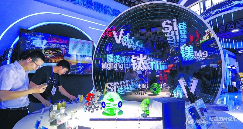 6月27日,观众在第八届中国—亚欧博览会哈密市展馆新材料展台参观。 天山网-新疆日报记者蔡增乐摄