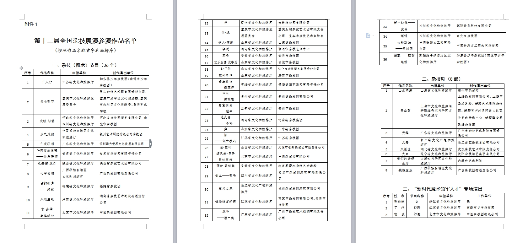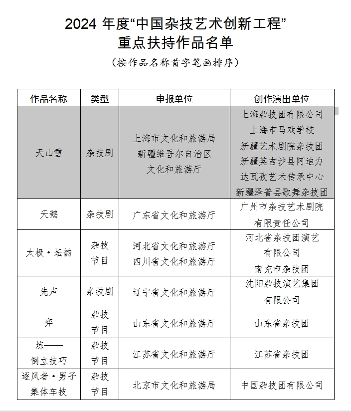 2024年度 “中国杂技艺术创新工程”重点扶持作品名单。