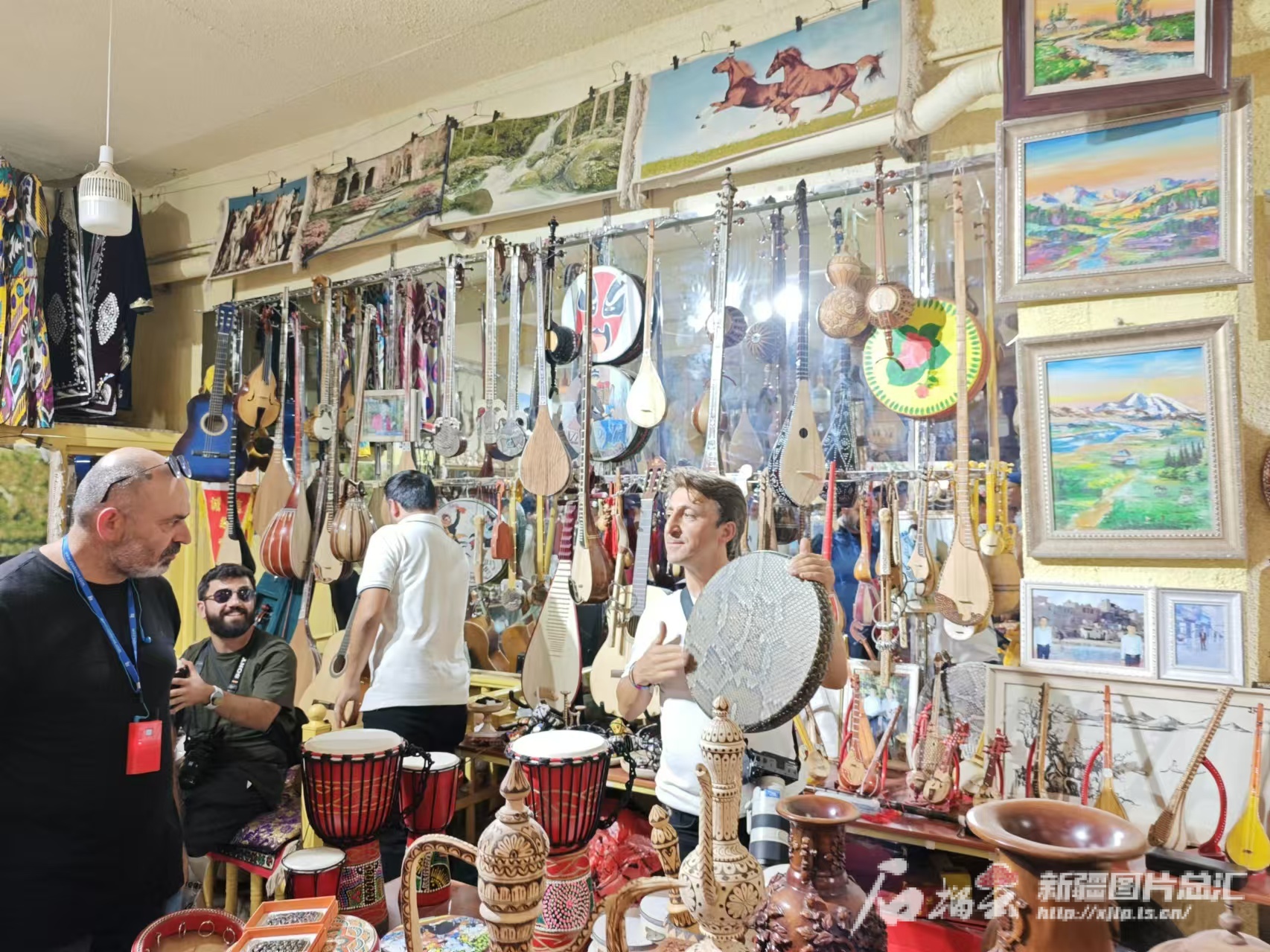 土耳其媒体人在喀什古城木器巴扎店内参观。天山网-新疆日报记者 宋海波摄