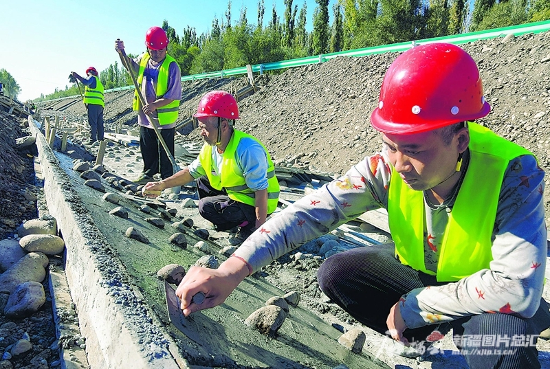 9月19日,工人在新源县巩乃斯河南岸灌区续建配套与现代化改造工程项目二标段施工现场作业。该项目建成后,将进一步提升巩乃斯河南岸灌区的供水保障。张文庭摄