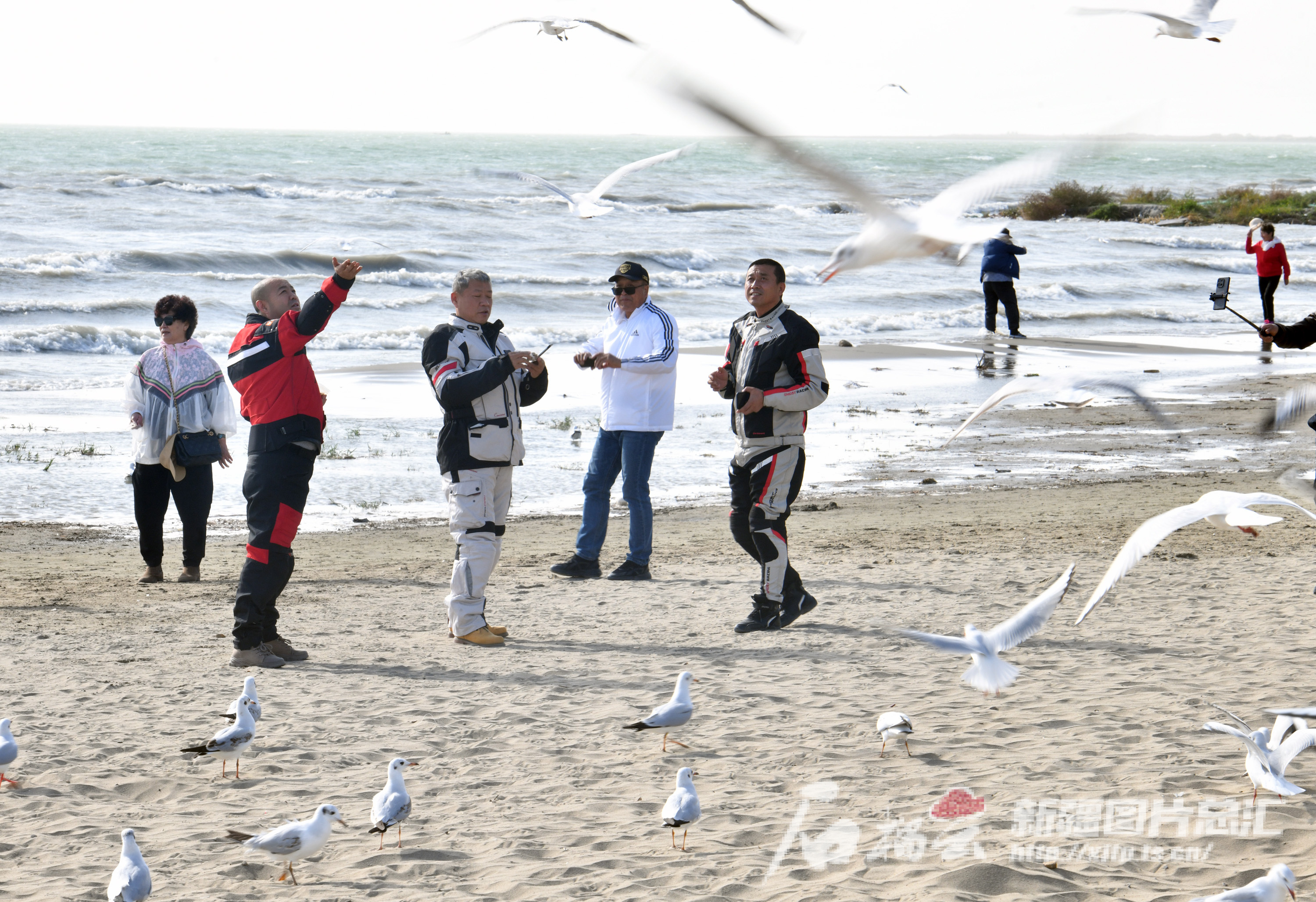 10月2日,博斯腾湖风起浪涌,金沙滩上海鸥飞舞,别有一番景致。