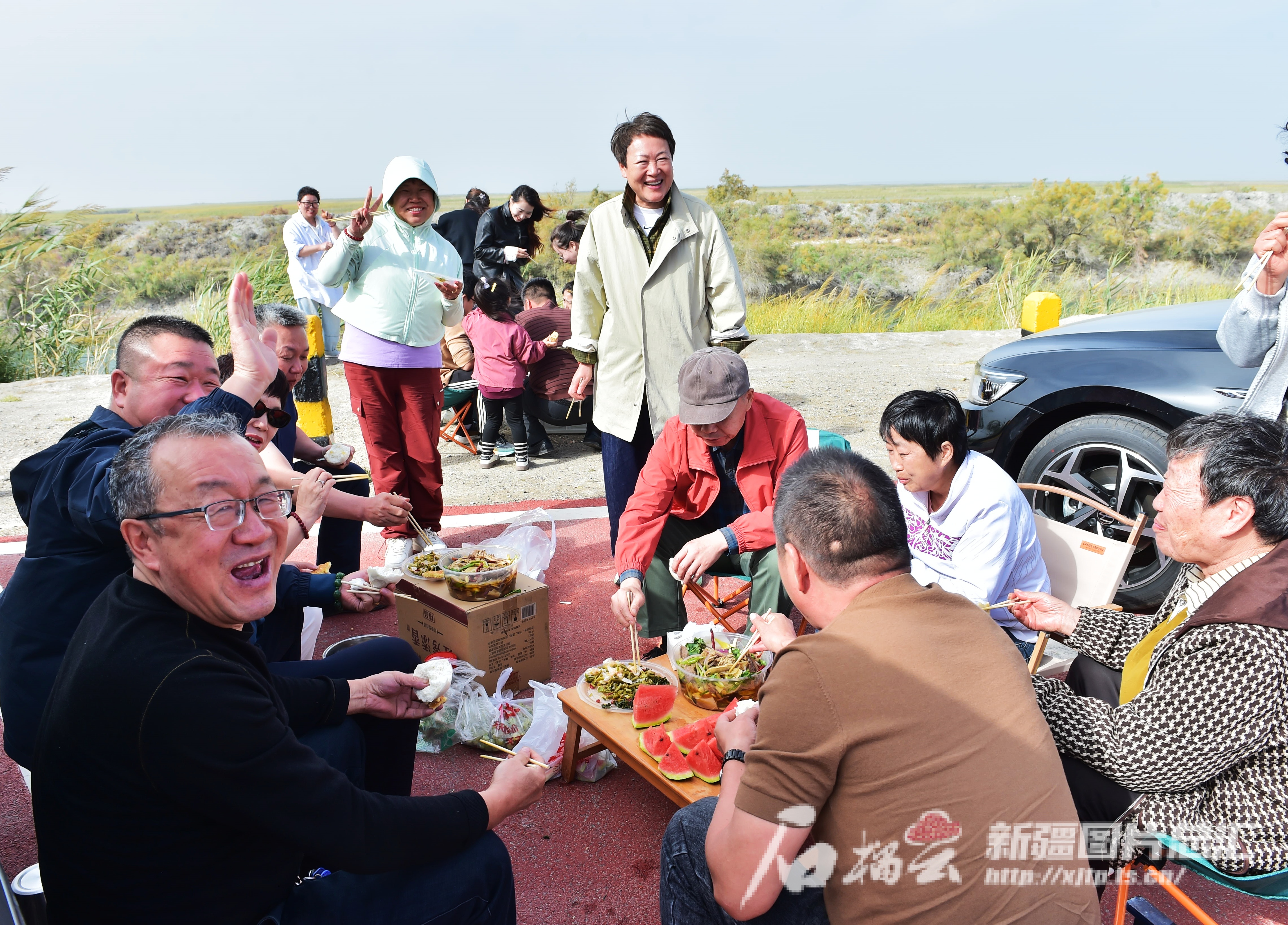 10月1日,游客在环博斯腾湖公路边上聚餐。天山网-新疆日报记者 王立华摄