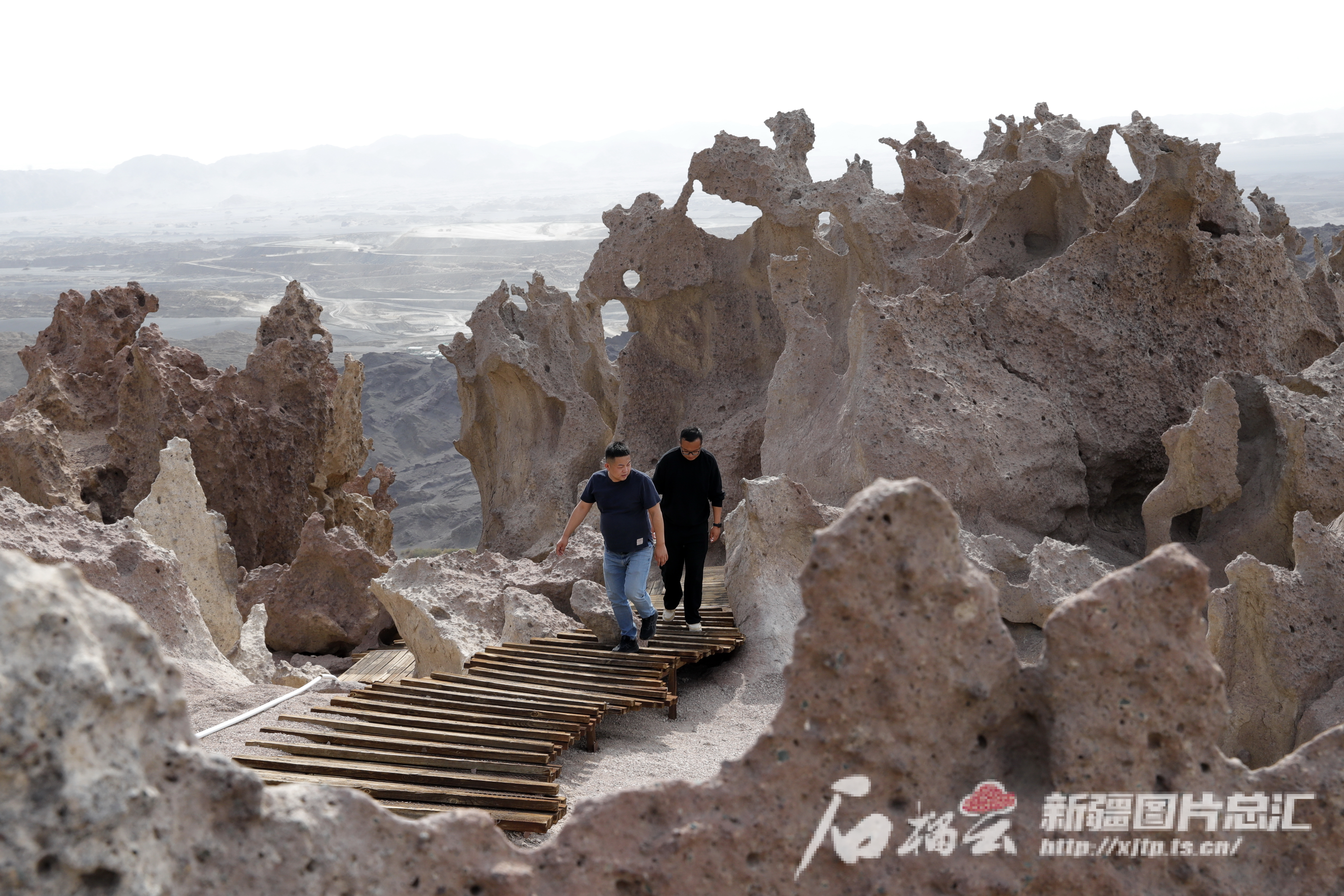 10月3日,乌鲁木齐市民李静一家驱车来到了距乌鲁木齐市200余公里的托克逊县盘吉尔怪石林,沿着山间木栈道,观赏怪石奇景。