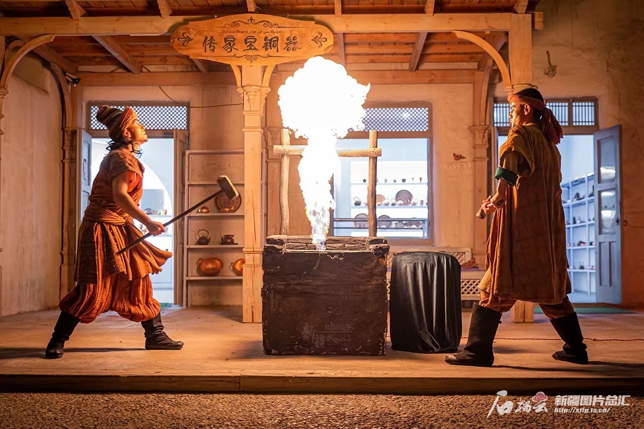 游客喜爱的火焰山景区NPC“打铁兄弟”。阳帆摄