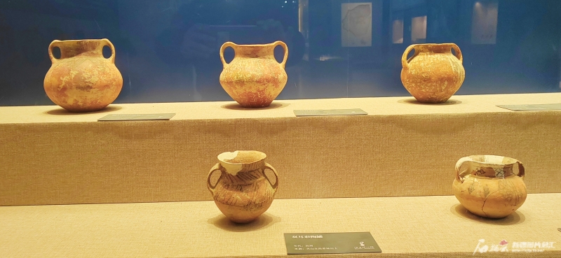 在哈密市博物馆古代文明陈列厅,一个个历经数千年岁月仍色彩鲜明的彩陶引人注目。