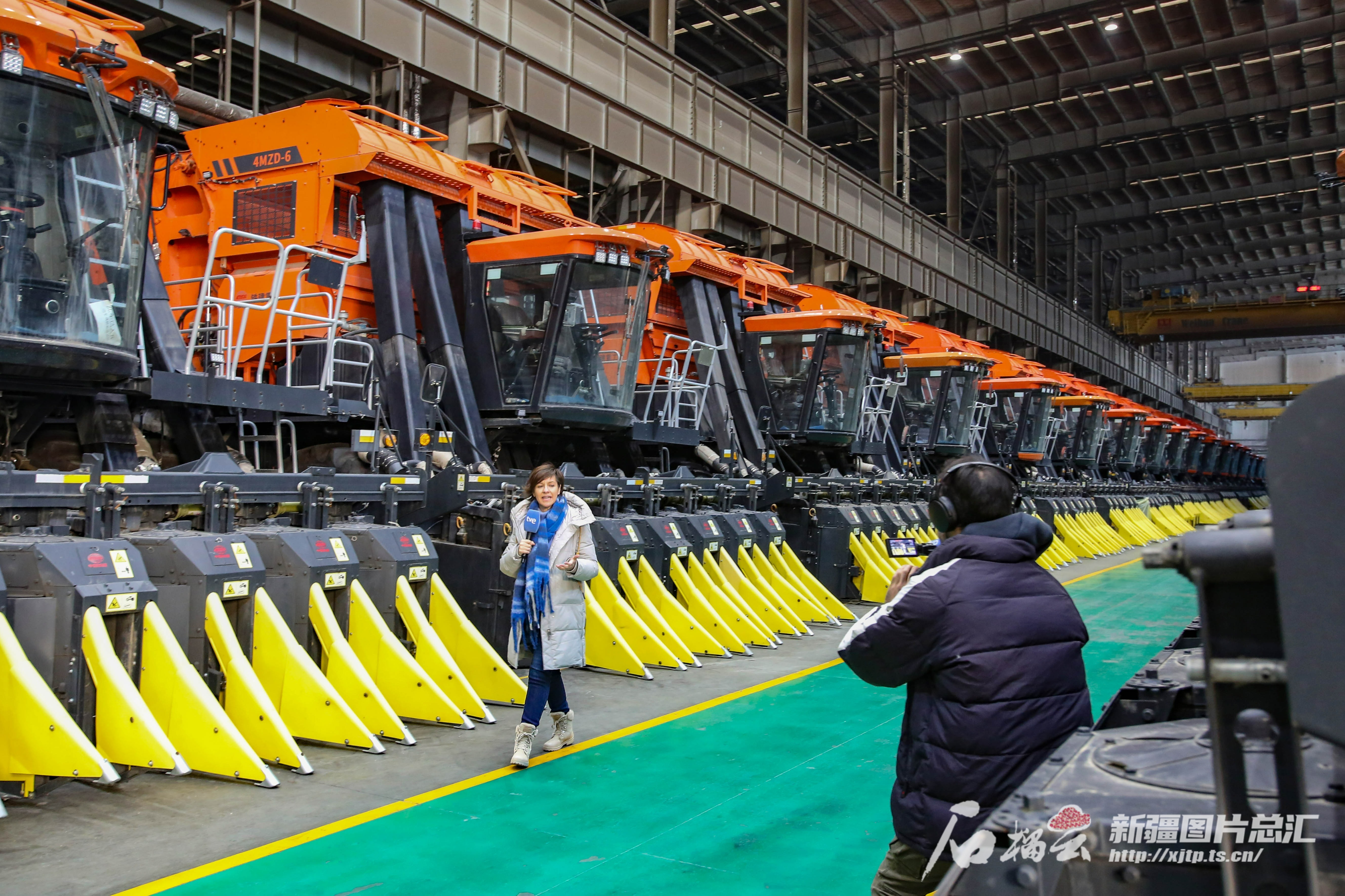 12月15日,西班牙电视记者在铁建重工新疆有限公司采棉机生产车间采访。