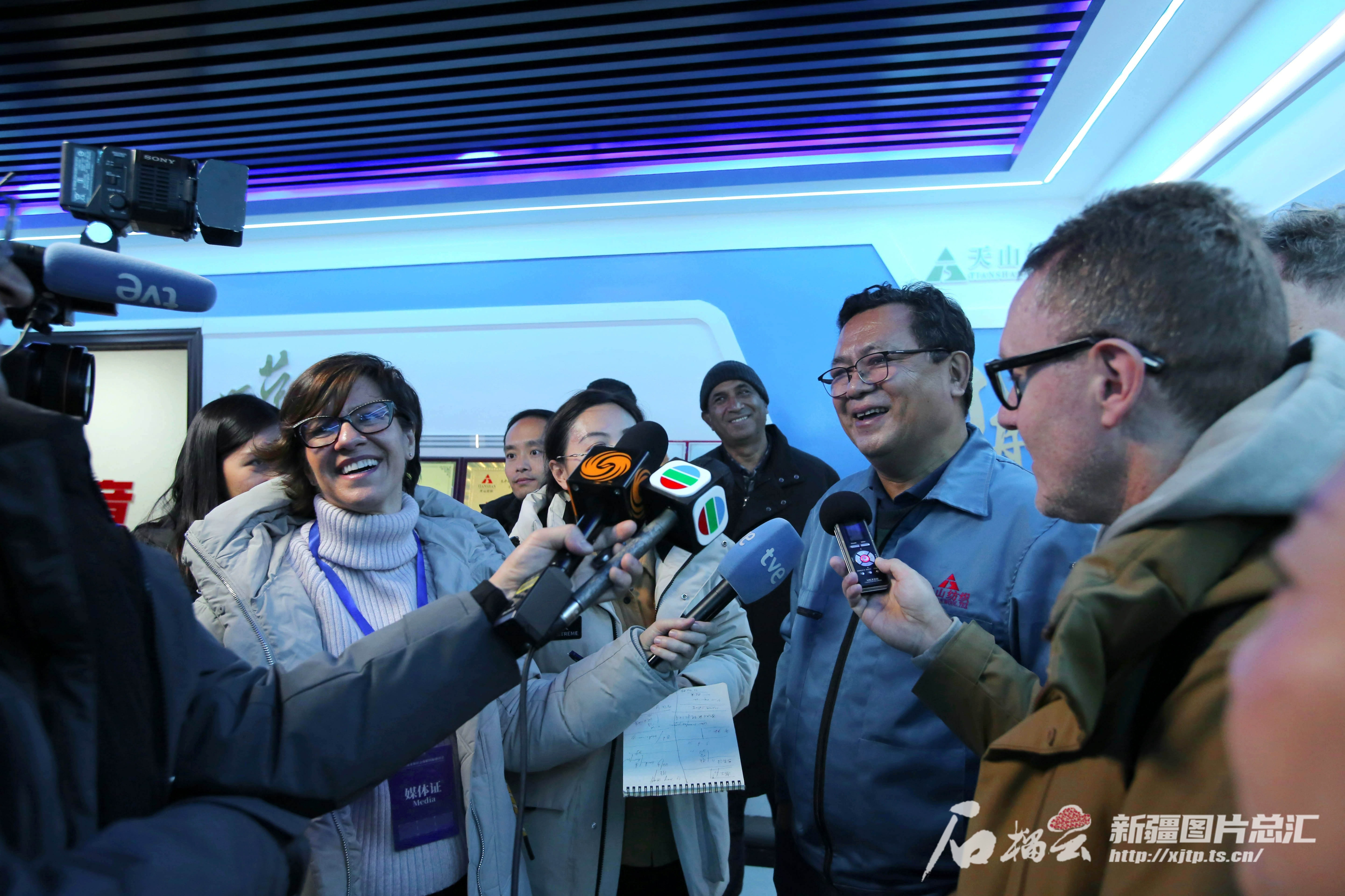 12月15日,中外嘉宾与媒体记者在宝钢集团新疆八一钢铁有限公司参观采访。