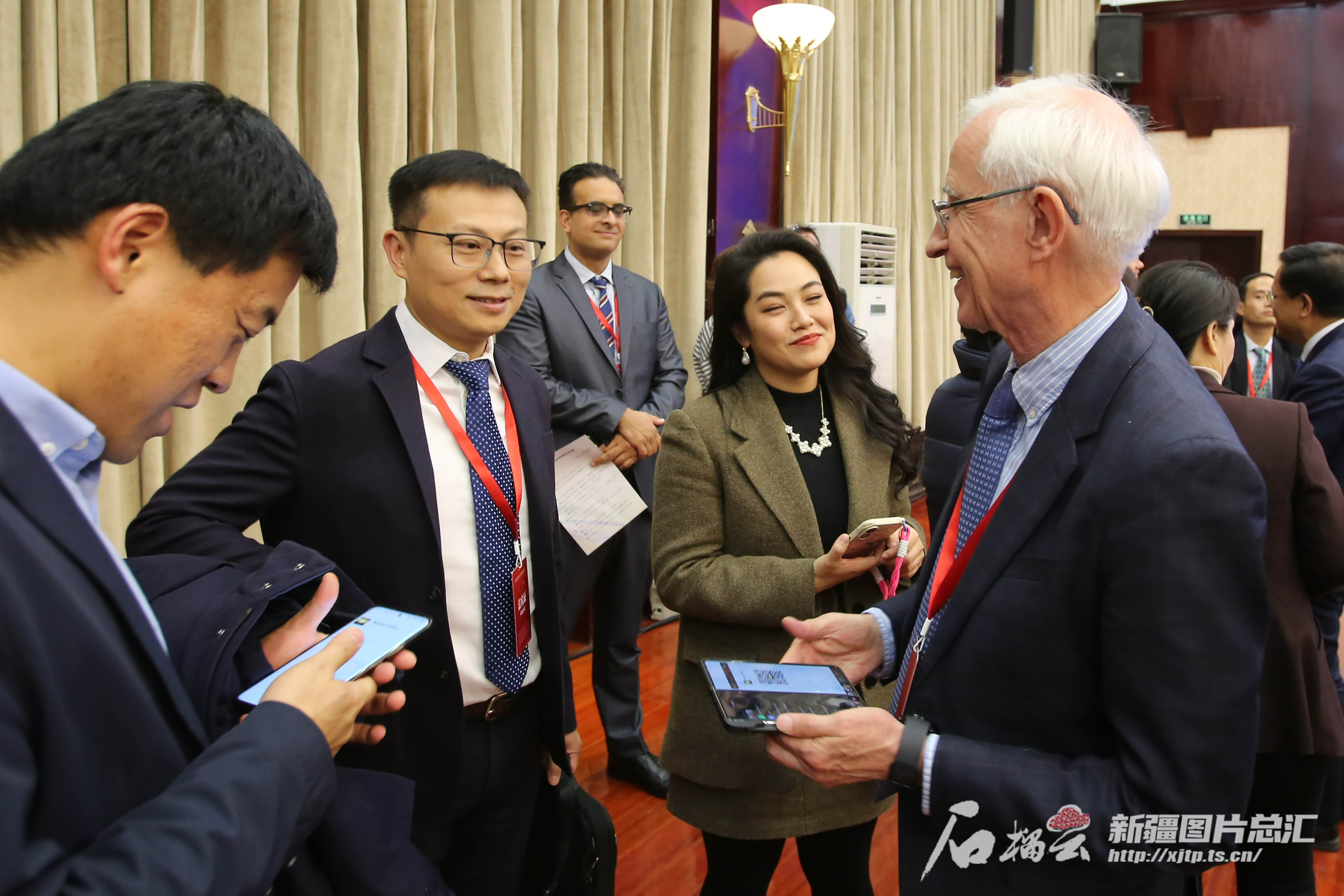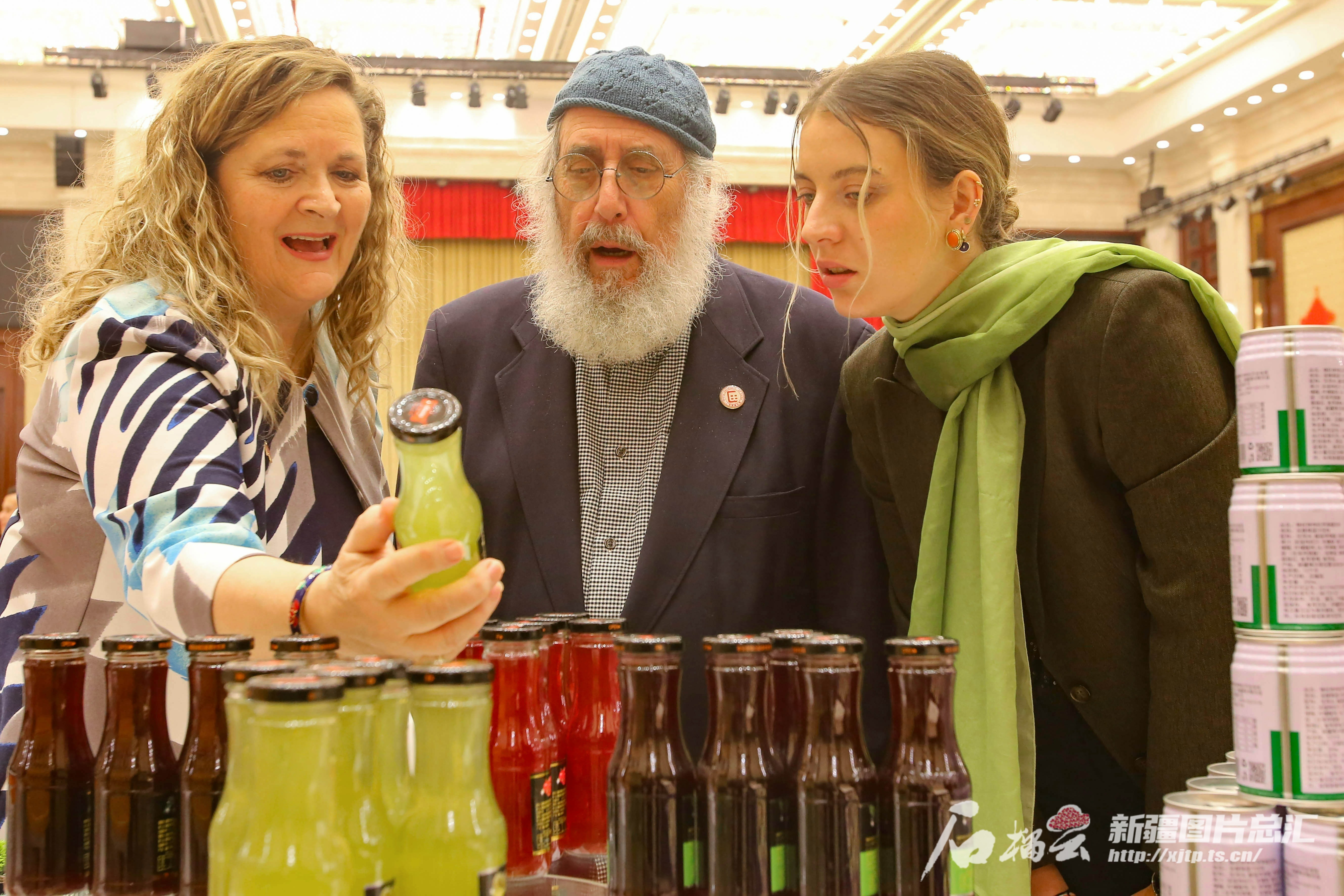 12月15日,中外嘉宾在乌鲁木齐市参观特色农产品。