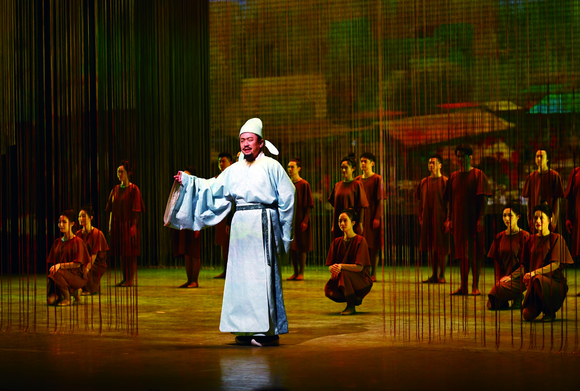 12月14日,新疆艺术剧院话剧团演绎的吟诵剧《岑参—千树万树梨花开》在新疆文化馆剧场上演。约提克尔·尼加提/摄
