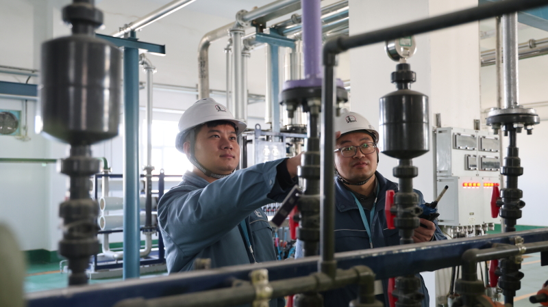 2月11日,在中石化新星新疆绿氢新能源有限公司绿氢生产车间,技术人员正在巡检。王建强 摄