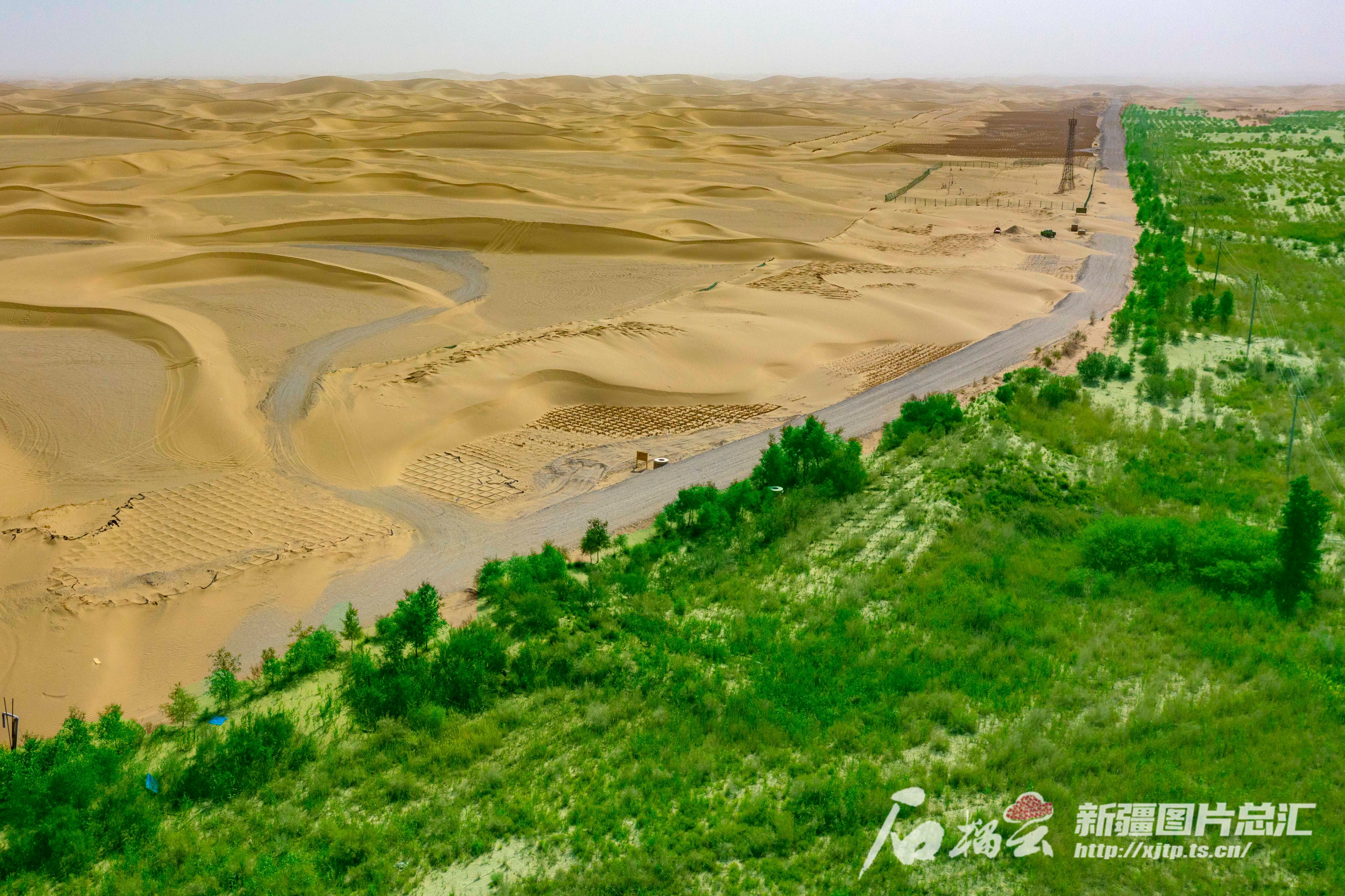 多年来,为了阻止风沙侵蚀,新疆采取工程治沙、生物治沙、光伏治沙等多种方式治沙。从昆仑山北麓到天山南坡,将各个“治沙战场”连成一体,将大漠苍龙牢牢锁住。