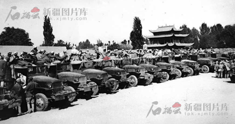 1949年10月12日,二军四师和战车五团装甲车营作为入疆先头部队,从玉门出发,驱车西进。13日,二军军指、五师离开酒泉,向新疆挺进。“白雪罩祁连,乌云盖山巅;草原秋风狂,凯歌进新疆”,高唱着王震作词、王洛宾作曲的这首《凯歌进新疆》,几万人马,数路大军,如滚滚洪流,奔腾西进,锐不可当,向新疆展开了气势磅礴的大进军。