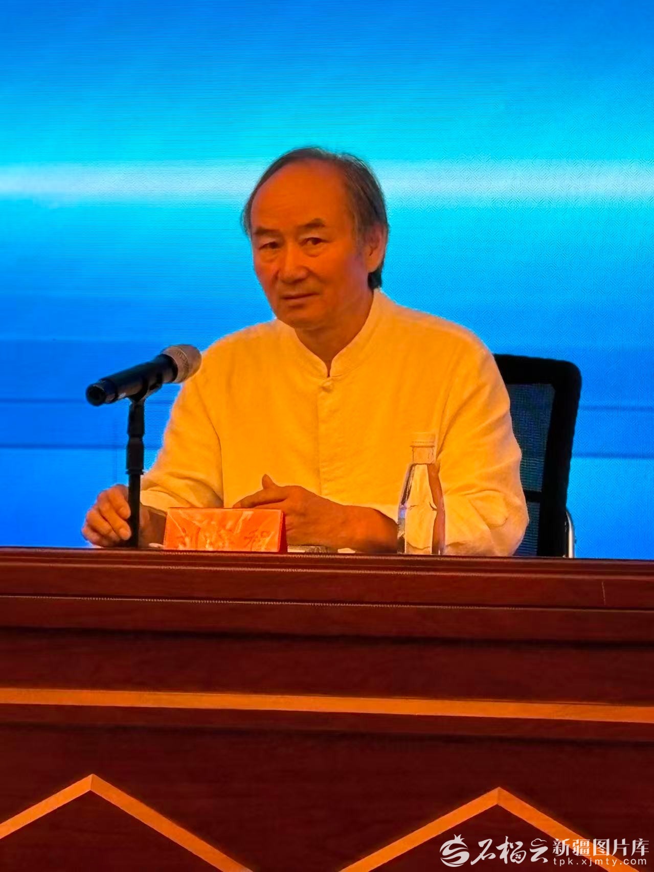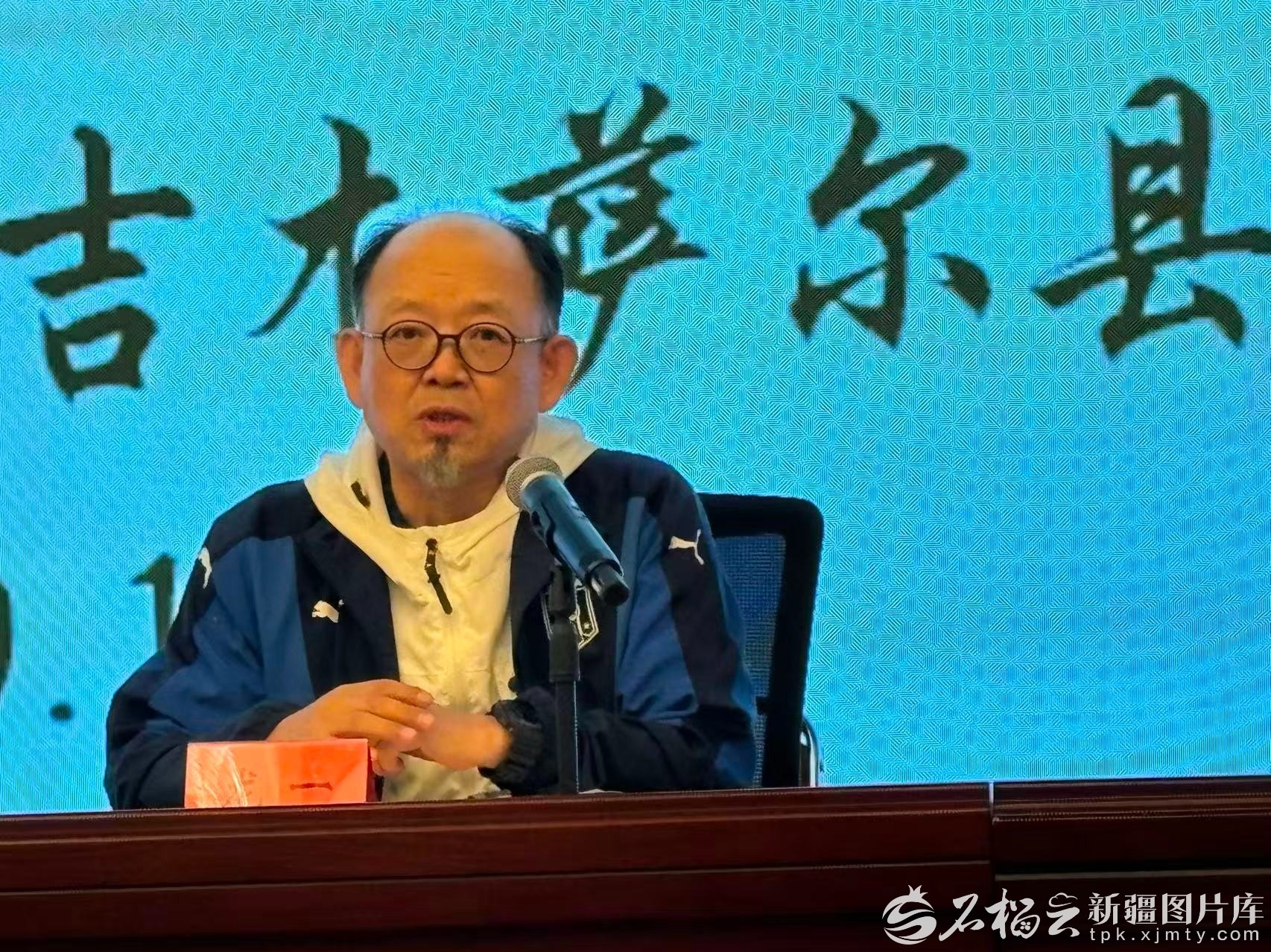 新疆文联副主席、新疆作协主席刘亮程带来的“不要熄灭院子里的灯——以《捎话》《本巴》为例谈新疆题材的写作”。天山网-新疆日报记者 玛依古丽·艾依提哈孜摄