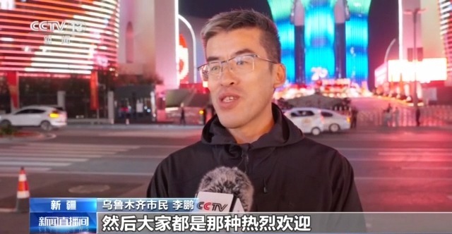 乌鲁木齐市民 李鹏:从机场到沿路,然后大家都是那种热烈欢迎,非常激动的一种心情。因为我土生土长就在这待着,然后确实我是感觉,方方面面都是非常大的一些改变,无论是比如说咱们的街道建设、城市建设,然后包括我们个人的生活品质提升,我觉得方方面面都是翻天覆地的。