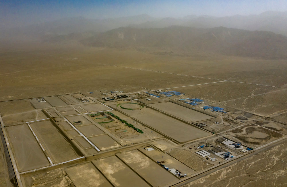 9月22日在新疆巴音郭楞蒙古自治州若羌县拍摄的三峡集团“疆电外送”第四通道电源项目施工现场(无人机照片)。