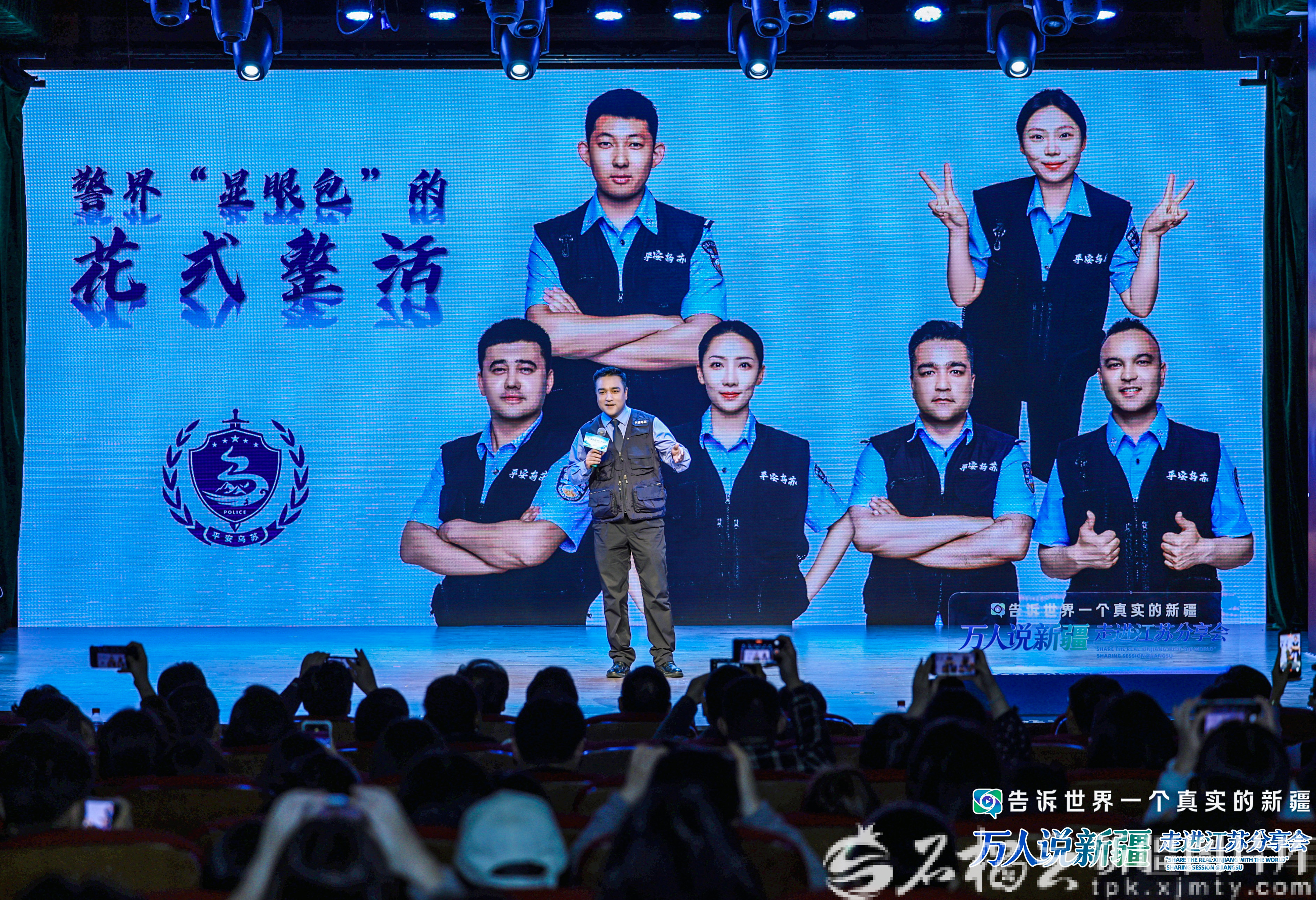10月29日,在“万人说新疆”走进江苏分享会上来自新疆乌苏市公安局民警、自媒体博主“馕警官”热合木·热合曼在分享他和他的团队创作短视频的故事。