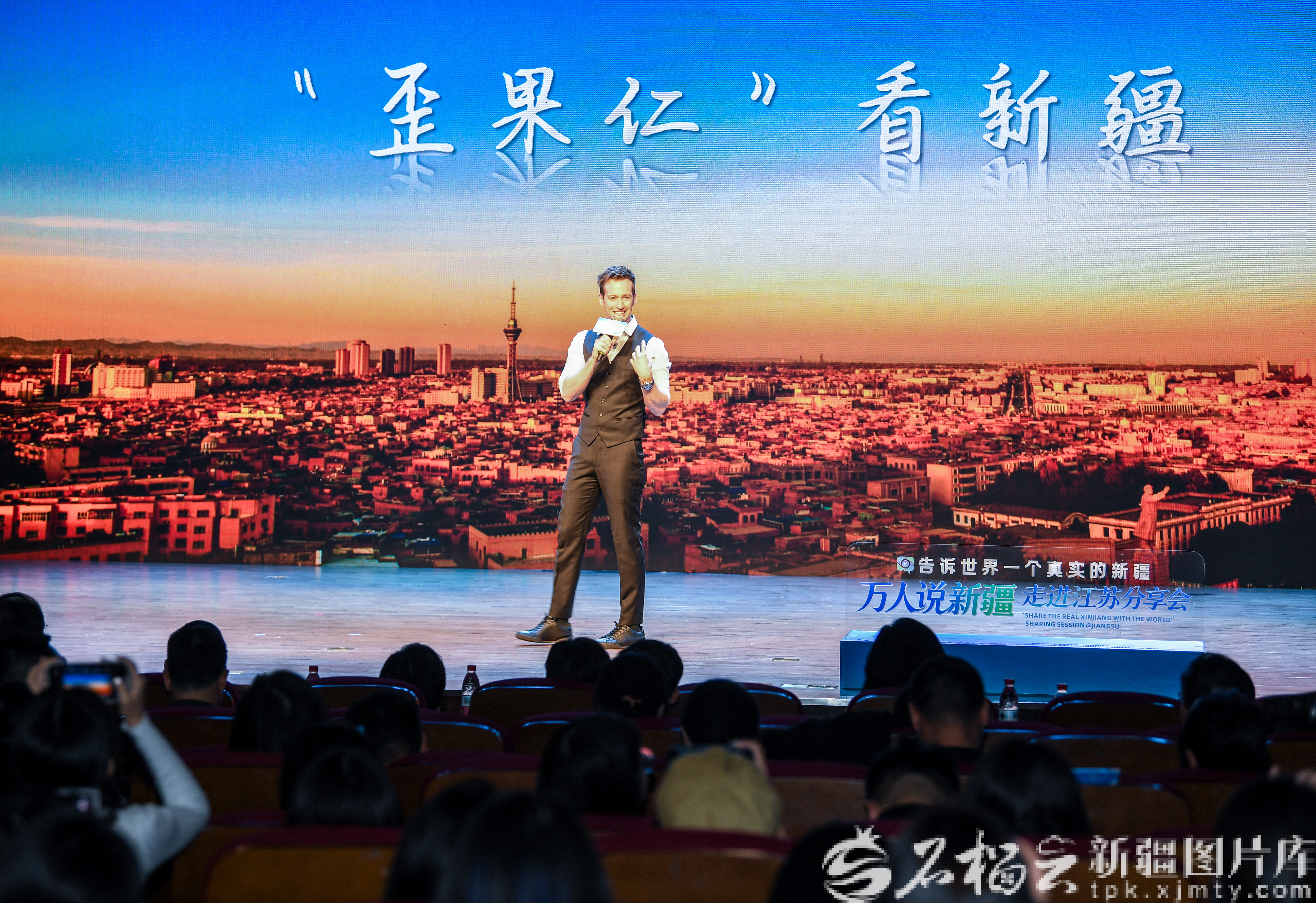 10月29日,在“万人说新疆”走进江苏分享会上,澳大利亚籍主持人安龙分享他在新疆采访的经历。