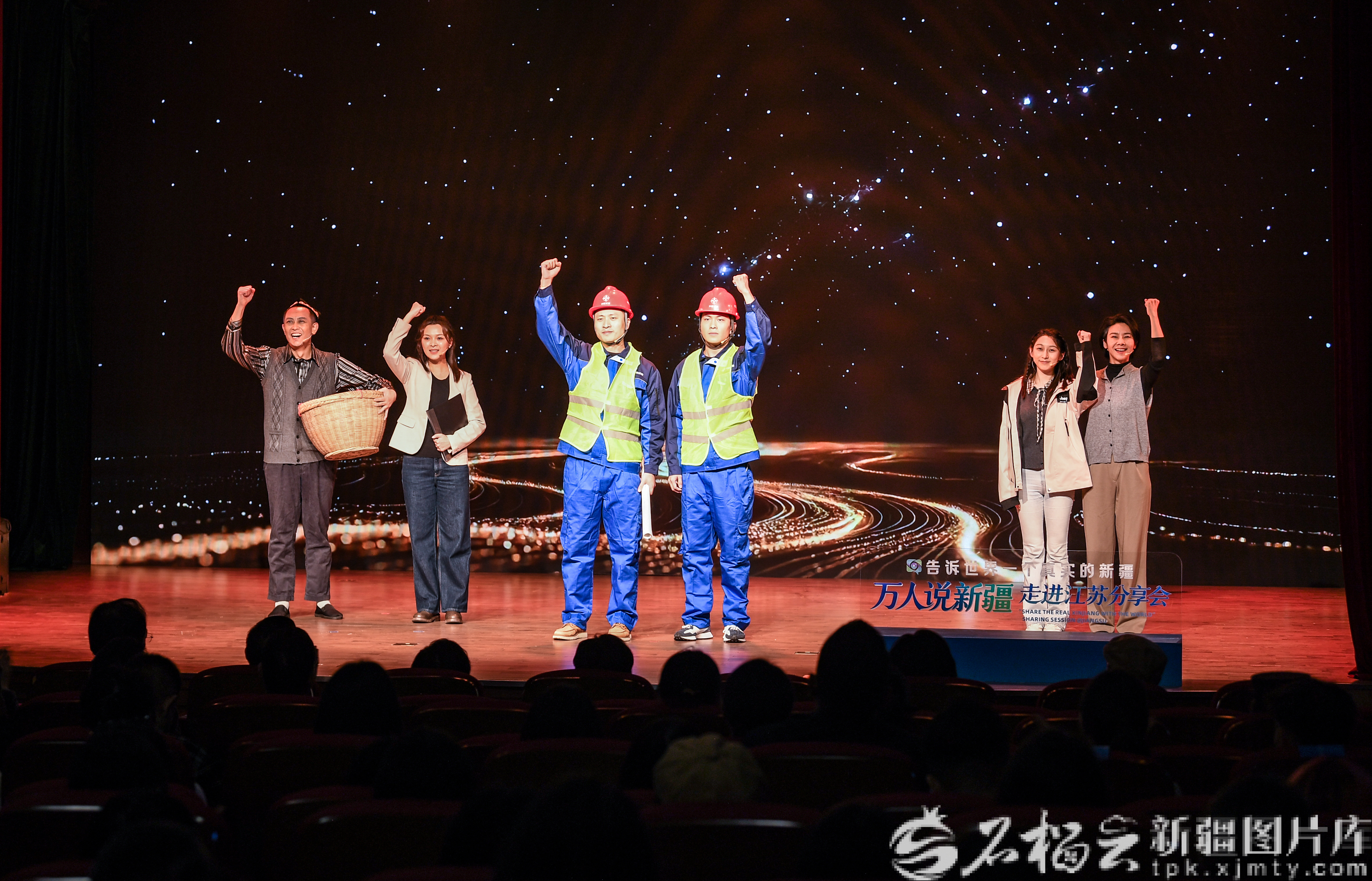 10月29日,在“万人说新疆”走进江苏分享会上,南京市话剧团的演员们表演情景演绎:种下梦想 花开新疆。